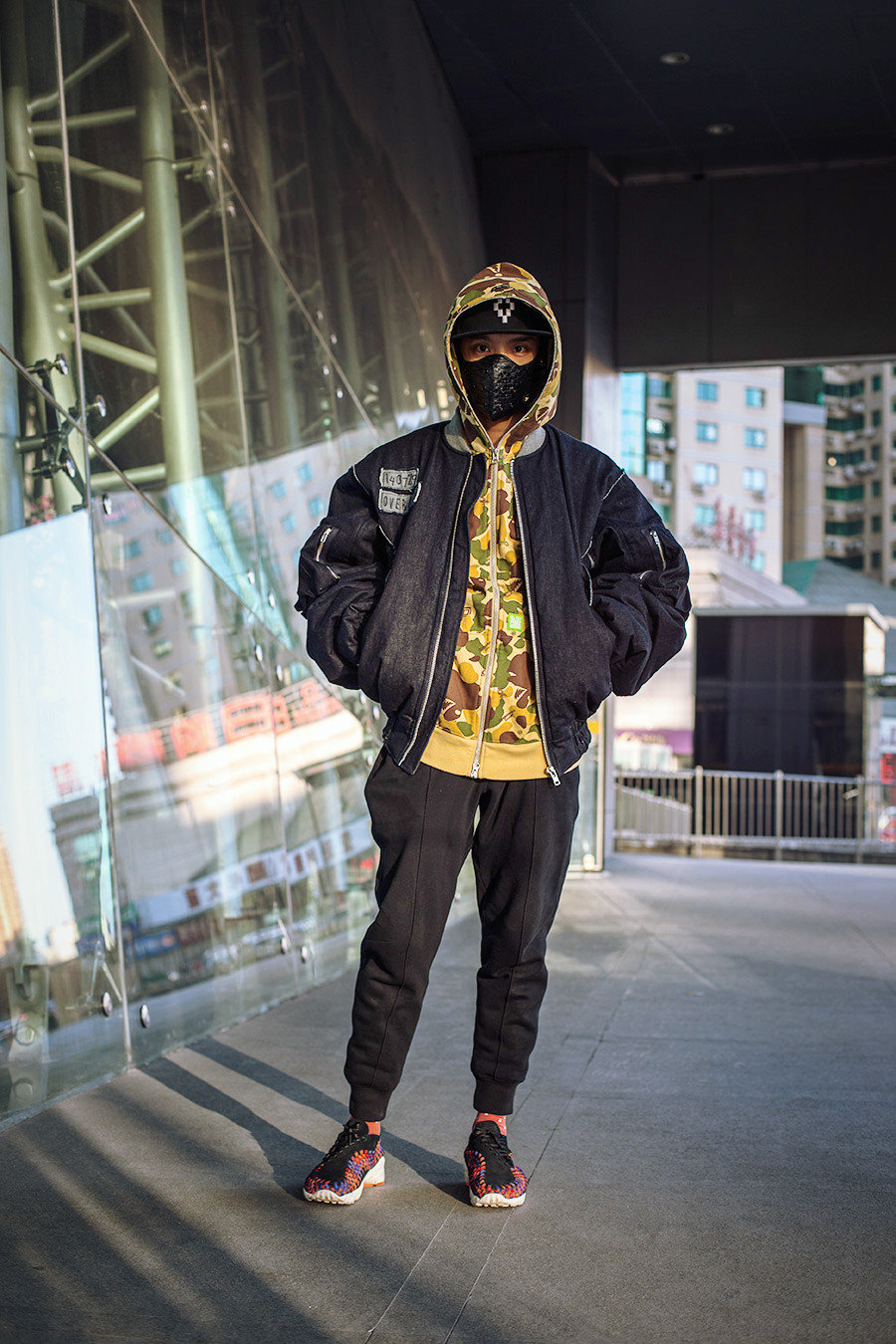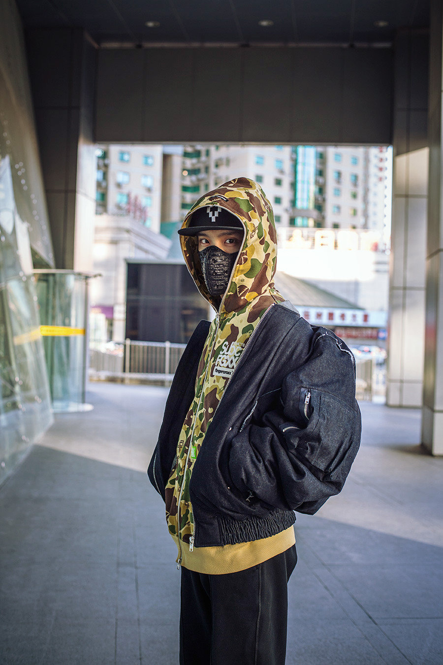 对!就差 Rihanna 的这个 “羽绒被” 风格了!垮掉的丐帮风范让人都没机会遮眼,就已经被直刺双眼!Kanye West 也有类似的演绎,不过这件 MA-1 的版型还算正常,只是选择了更大的尺码。