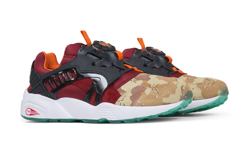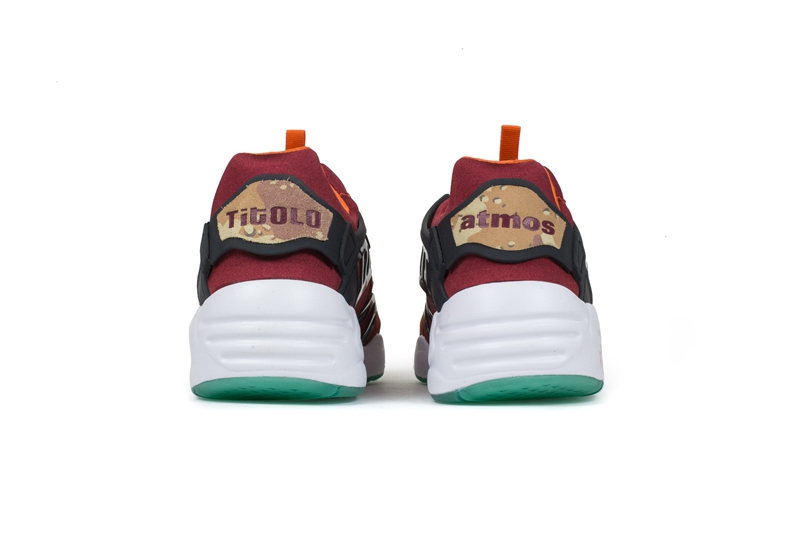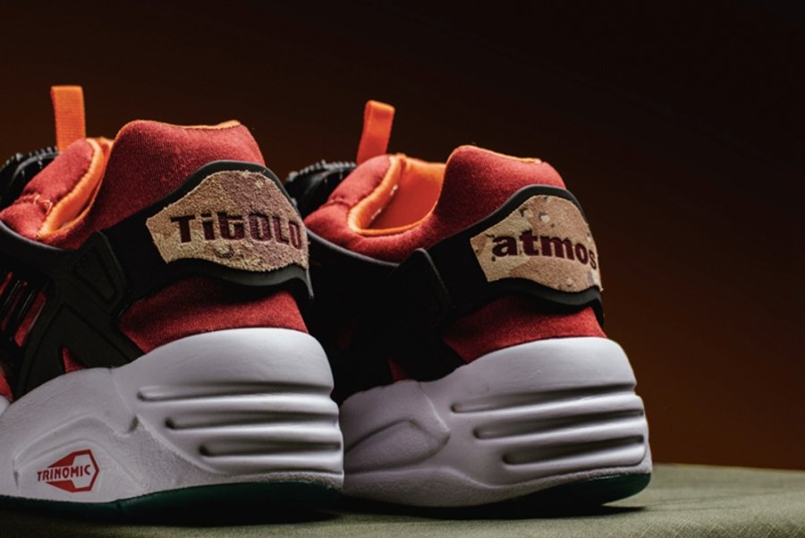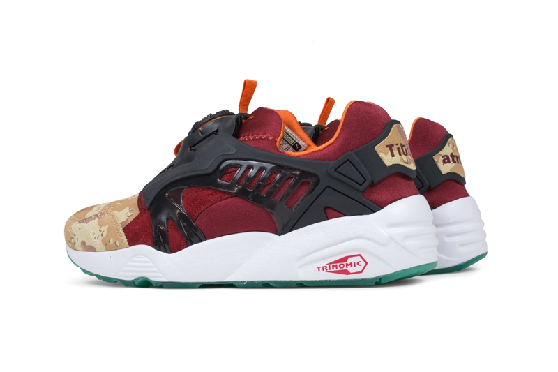 Puma 的转盘系带跑鞋 Disc Blaze 自回归以来,一向是联名的主力选手。 日前 Puma 携手瑞士 Titolo 和日本的 atmos 两大球鞋店铺,将沙漠迷彩与象征着日落黄昏的鲜艳红色衔接于鞋身之上,辅以黑色转盘及框架固定,错落有致的色彩搭配营造出极富层次的视觉冲击。 后跟分别印制各自店铺名称,以此彰显三方联名的特殊身份。 目前该鞋已男款全码登陆海外球鞋店铺 Feature,售价为 $150 美元,感兴趣的小伙伴不妨尝试海淘入手。