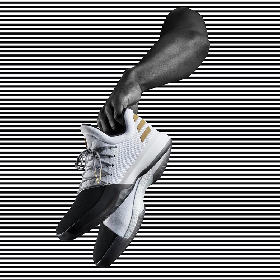 哈登战靴精品频发!这双 adidas Harden Vol.1 “Disruptor” 也亮相了火箭对阵勇士的比赛场。 虽然火箭最终不敌勇士,但登哥脚上的这双 “黑脚趾” 依然是风光大放!白色鞋身搭配黑色的鞋头,颇有 Black Toe 的风范,细节和后跟的三条杠则以金色呈现,亮丽指数极为高涨! 相关信息: >> 颠覆者降临!adidas 发布 Harden Vol.1 “Disruptor” 全新配色