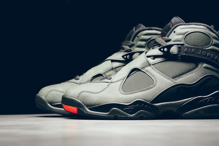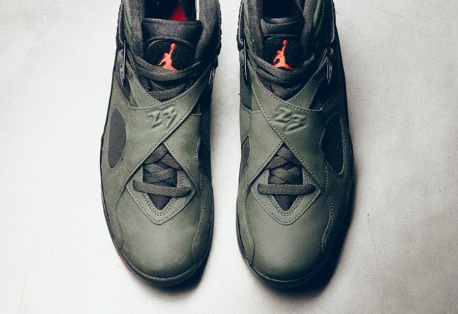 军事风一直是街头永不过时的潮流,眼前这款 Air Jordan 8 “Take Flight” 以 MA-1 飞行夹克作为配色灵感,将军绿色贯穿整体鞋身,以夹克内衬的橙红亮色点缀细节,中底及内衬以黑色衬托。