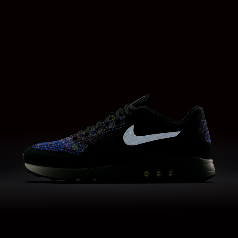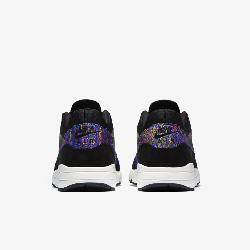 这款 NikeLab Air Max 1 Flyknit 不仅以彩虹编织展现了 Flyknit 材质的独特视觉表现力,黑色麂皮的鞋身包裹,加上白色中底的托衬,使得 Air Max 1 的复古运动风范同时尚气质完美融合,绝对是一双街头吸睛的神器!
