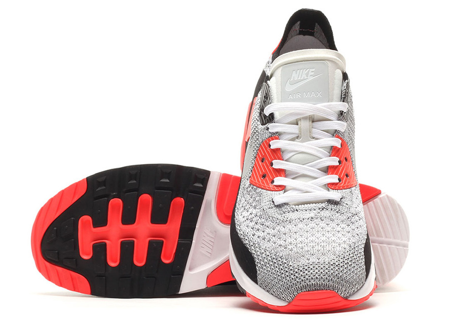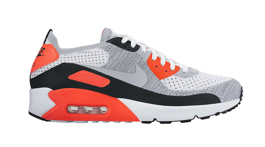 眼前这款 Nike Air Max 90 Ultra 2.0 Flyknit “Infrared” 就在该鞋型最为经典的红外线配色之上,原地改造,恐怕是 AM90 粉丝难以抗拒的必入款式!