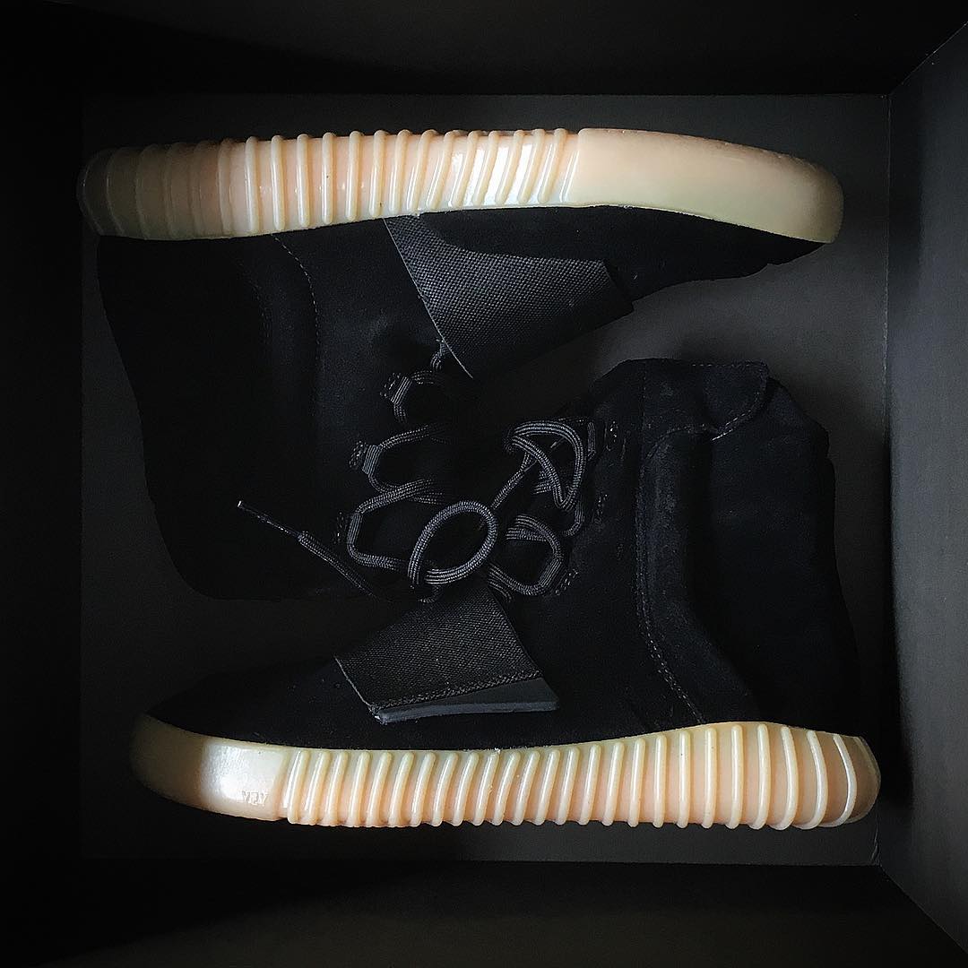 极为讨好而质感十足的黑色麂皮鞋身,生胶外底的托衬不仅有着更好的点亮效果,看起来也是带有夜光效果的!如果市售,恐怕会是一款人气超群的 Yeezy 新品!