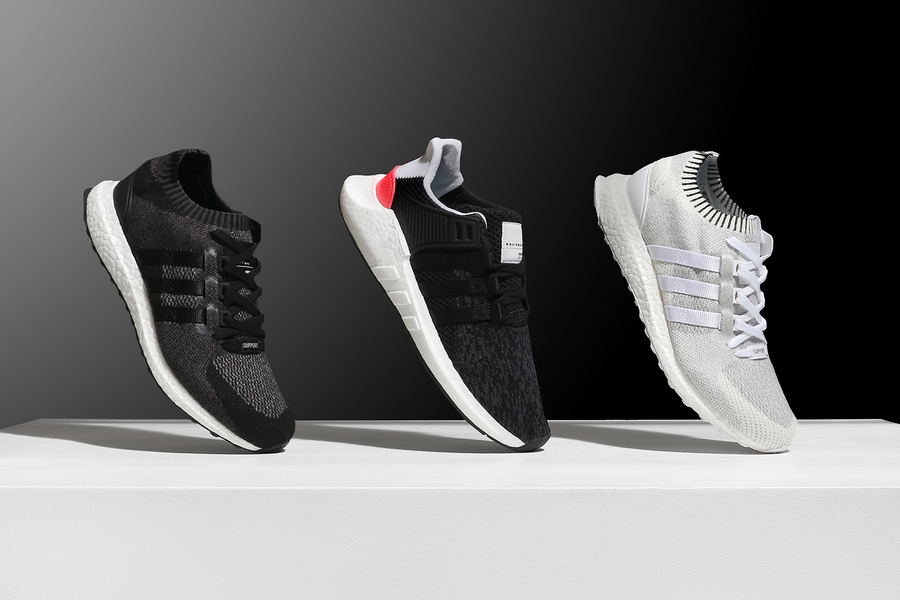 其中的 adidas EQT Support 93/17 不仅融合了 Primeknit 编织材质,全新的 Boost 全掌中底则在穿着感受和视觉效果上带来双料加持!首发的黑粉配色目前人气极高,货号为 BB1234,目前已经在海外地区发售,发售价也高达 $180 美元。