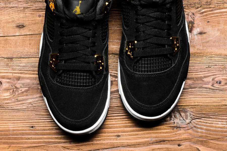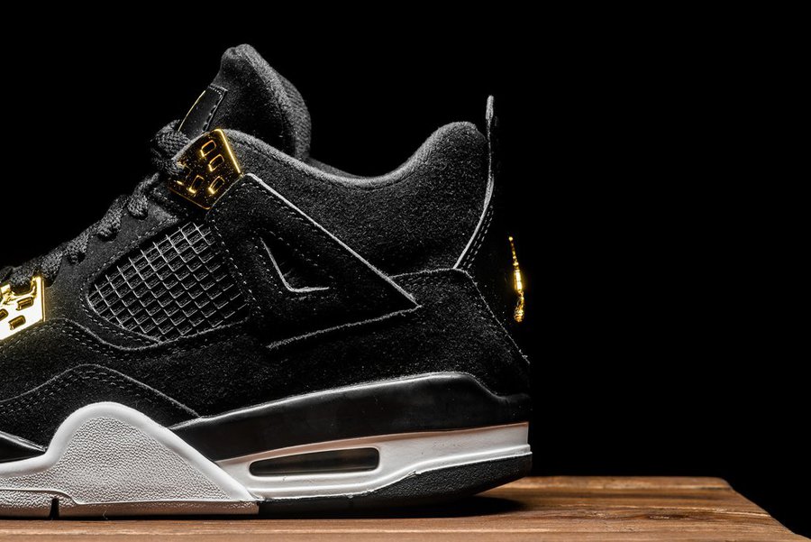 黑色牛巴革的无敌质感,加上金色细节的华丽光泽,这双全新的 Air Jordan 4 “Royalty” 带来让人难以拒绝的细节诱惑!