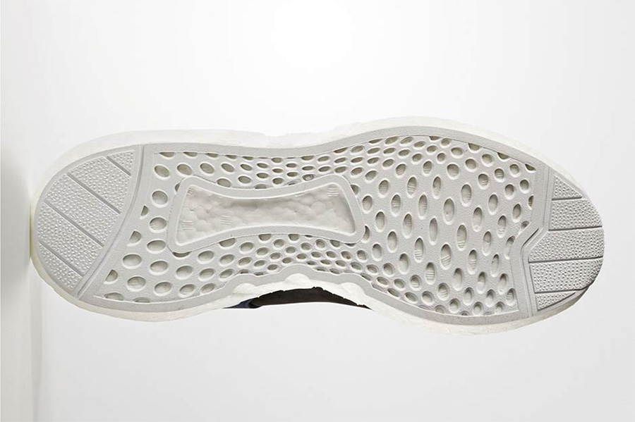 这双 White Mountaineering x adidas EQT 93/17 Boost 最具标志性的依然是硕大的 Boost 全掌中底,后跟的突出设定格外的有辨识度!