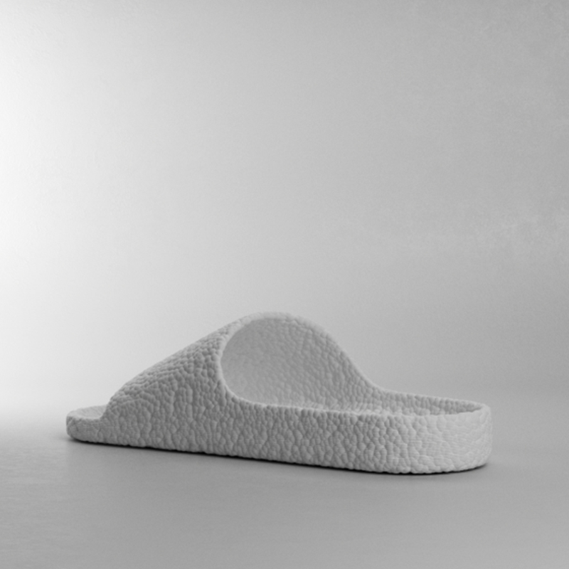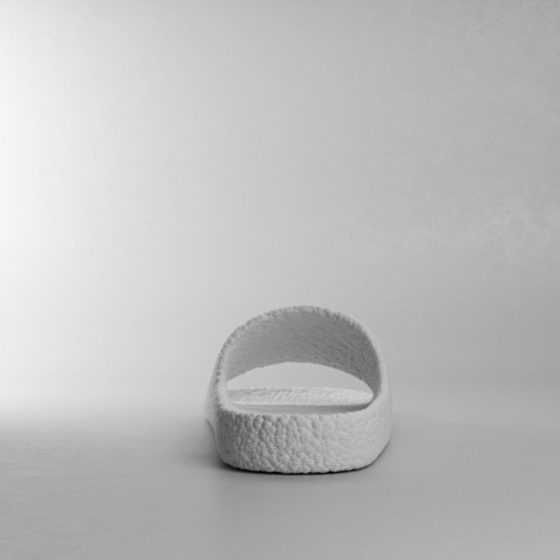 日前国外 3D 设计师 Oleksandr 别出心裁的将这个爆米花材料塑造成一体式拖鞋模样,仅以一篇橡胶外底来解决磨损和防滑问题。