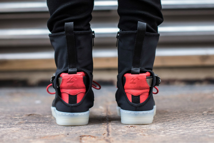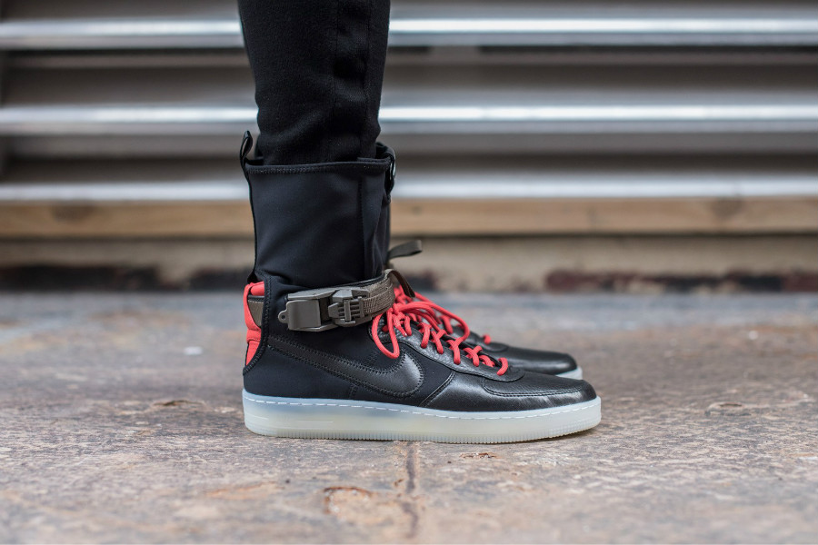 这款 ACRONYM x NikeLab 的联名球鞋,基于 Nike Air Force 1 Downtown High 高帮鞋型进行机能转换,采用的材质也是极为上乘,在彰显 ACRONYM 品牌元素的同时,当然也没有错过标志性扣锁装置的融入。以柔软的鞋帮材质包裹 Air Force 1 High 的脚踝处,3A 扣锁则可以很方便的完成锁定。鞋身也是皮革和尼龙材质拼合打造,皮革鞋垫则提供了完美的穿着感受。