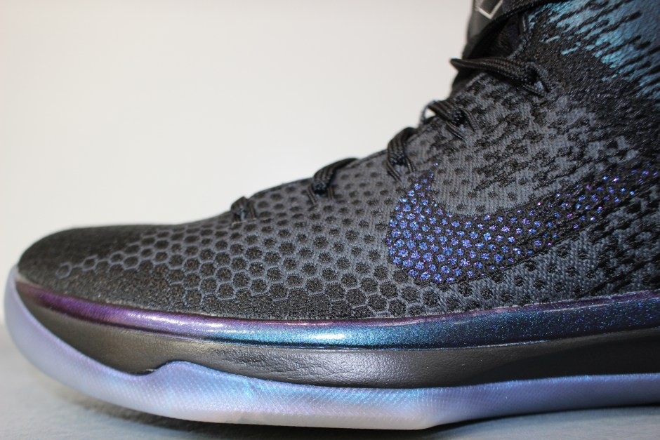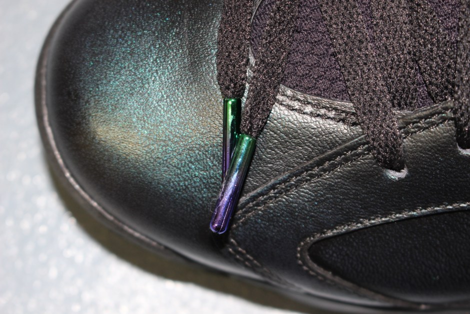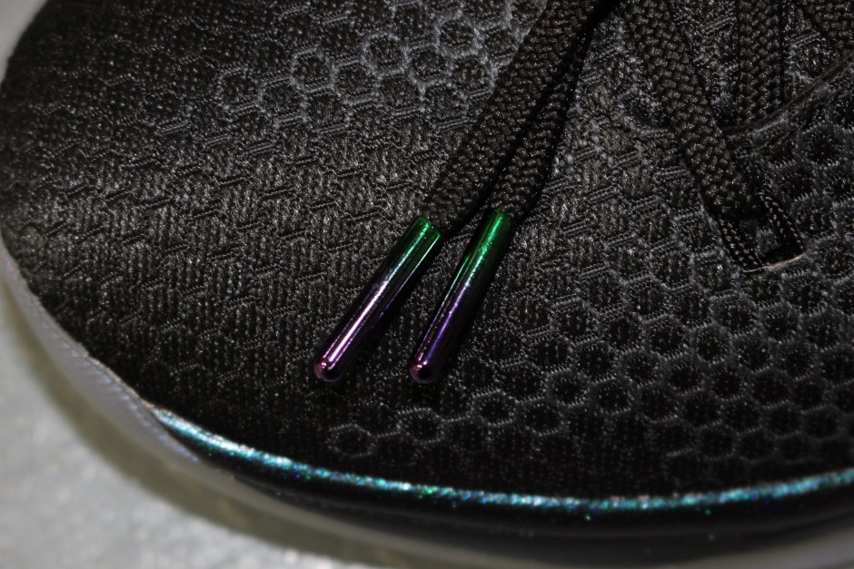 鞋身从前至后以黑色六边形织物自然过渡到鞋帮青绿染色皮革,搭配电镀 Flightspeed 装置。金属紫点缀的 Nike Swoosh 有别于以往的若隐若现,展现出鬼魅的个性装扮,驰骋球场必将成为一大焦点。