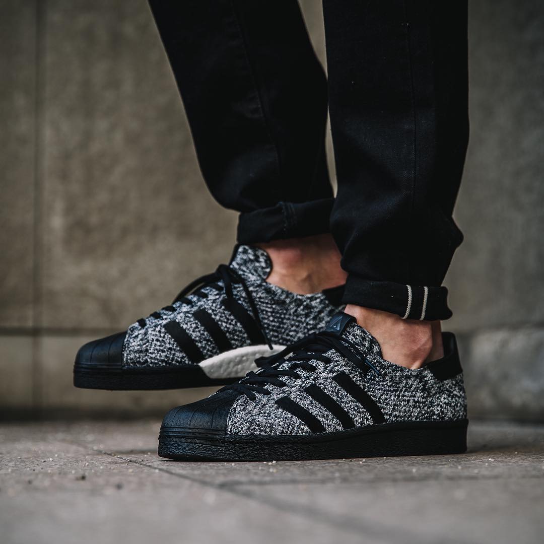 这双 SNS x SS x adidas Superstar Boost 不仅以最新的 Superstar Boost 为蓝本,还采用了 Primeknit 编织材质打造鞋身,在硬件配置上丝毫不输给 BAPE x NBHD x adidas 三方联名。