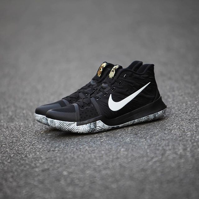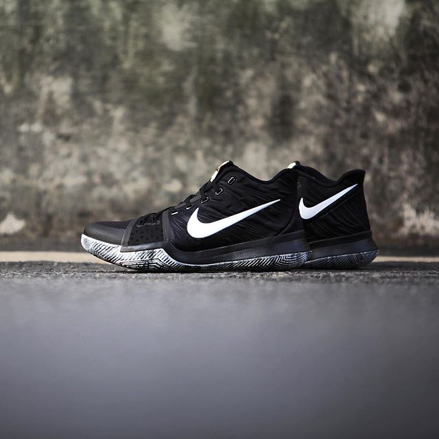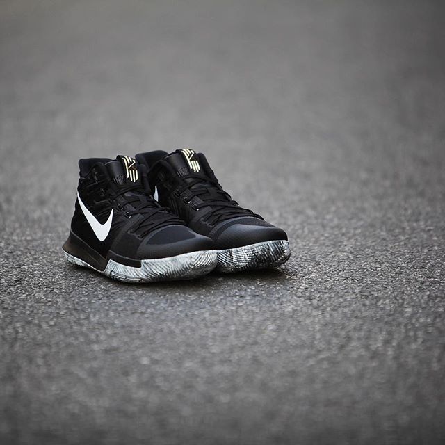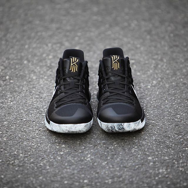 这款 Kyrie 3 “BHM” 以黑色鞋身装饰白色的 Swoosh,鞋面的龙纹覆盖,依然展现了不俗的战斗气质,大理石外底托衬,鞋舌的 Kyrie Logo 和鞋垫字样都采用了金色打造,荣耀氛围十足!