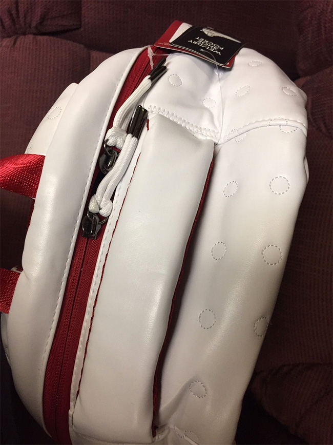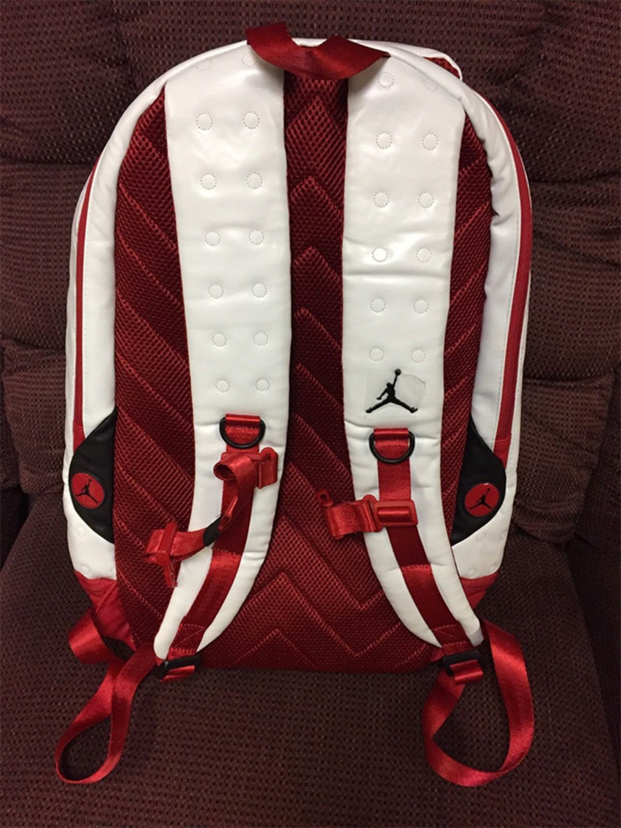 随着 Air Jordan 13 OG “Chicago” 的发售亮相的还有同主题的 Backpack 背包,同样以白黑红三色搭配呈现,跟鞋款一模一样的视觉氛围,白色皮革纹理也与鞋面一样。
