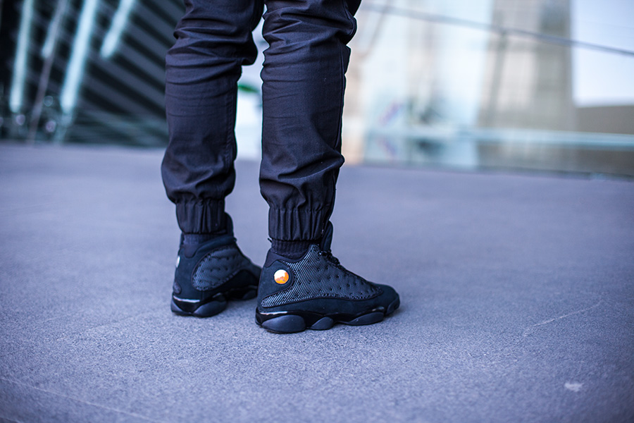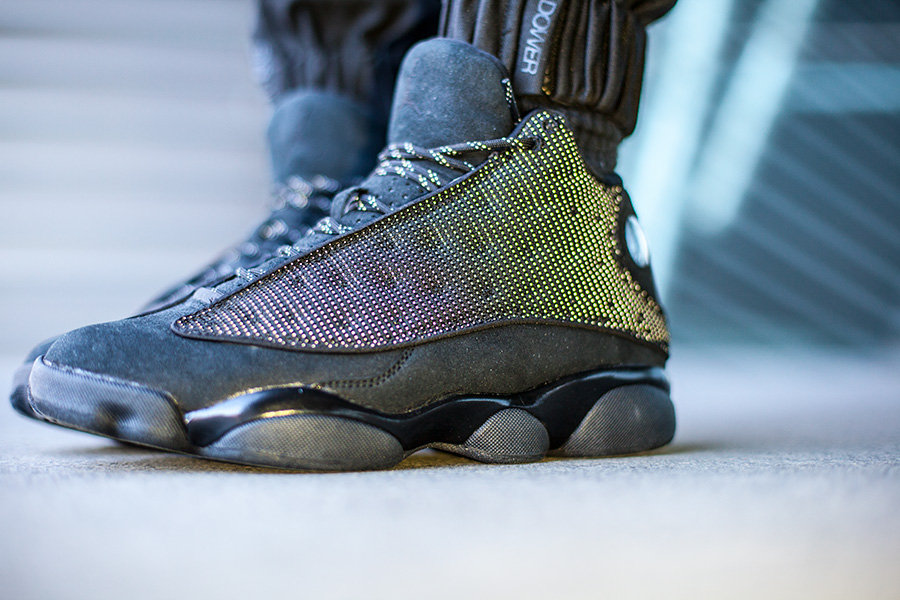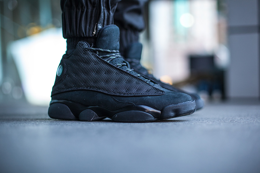 Air Jordan 13 “Black Cat” 则是暗藏杀机的潜行角色,全黑鞋身同样百搭,而不经意间的 3M 反光则是独特个性的完美显现!