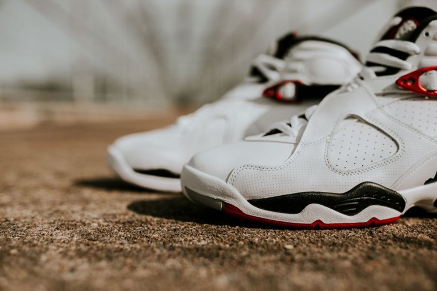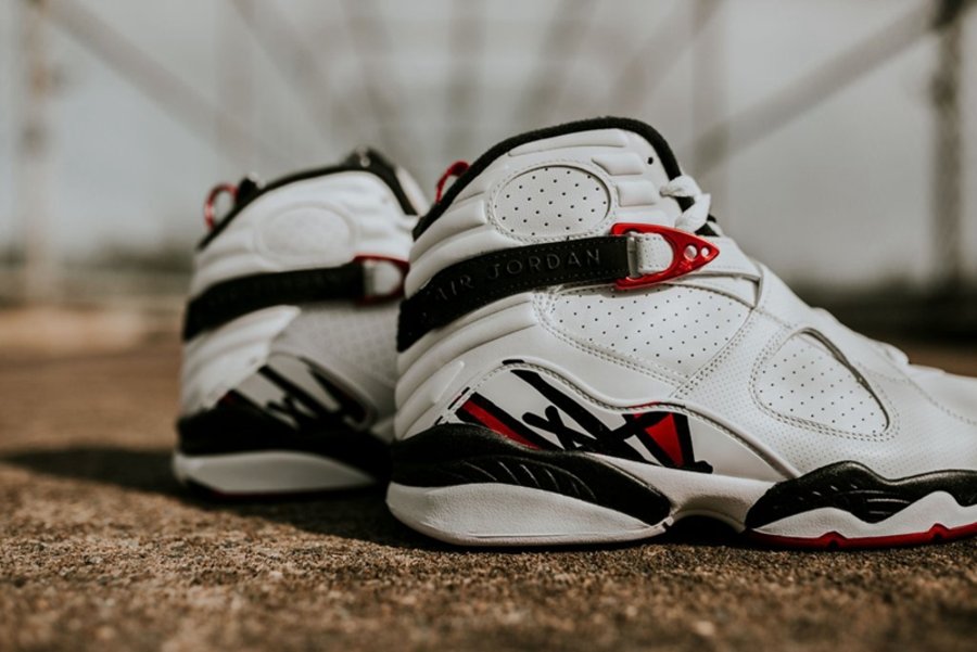 曾作为 AJ8 兔八哥备选配色而设计的 Air Jordan 8 “Alternate”,整体以白色为主线,金属红细节与黑色交织呈现,鸦式的内衬与绣有 1993 的红色鞋提都为该鞋营造出熟悉的公牛队气氛。