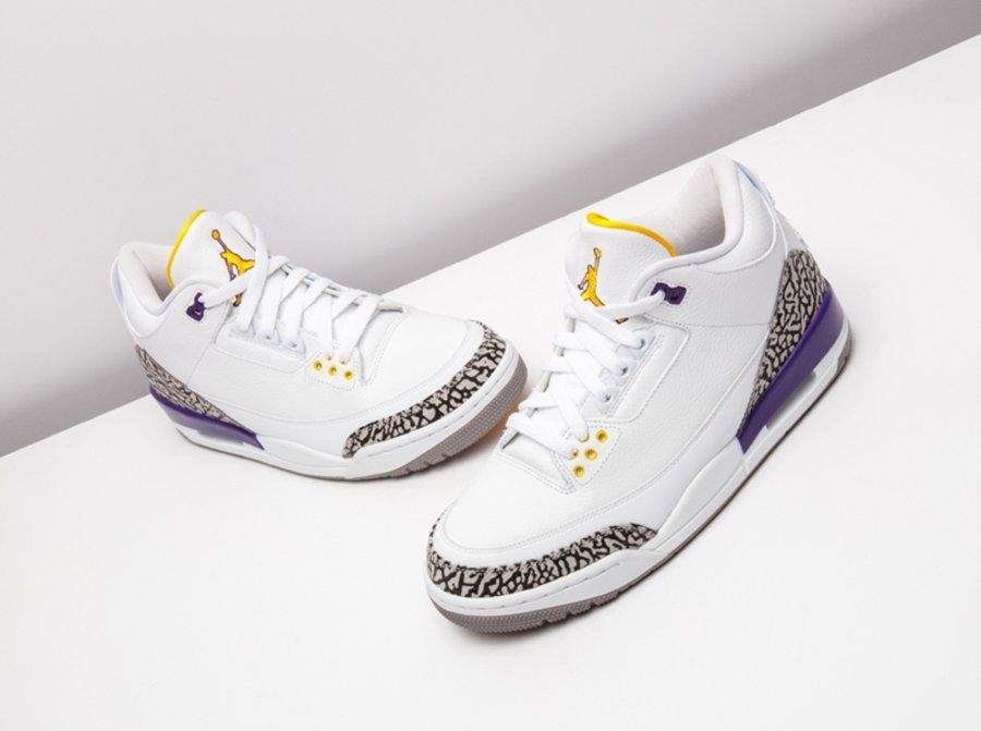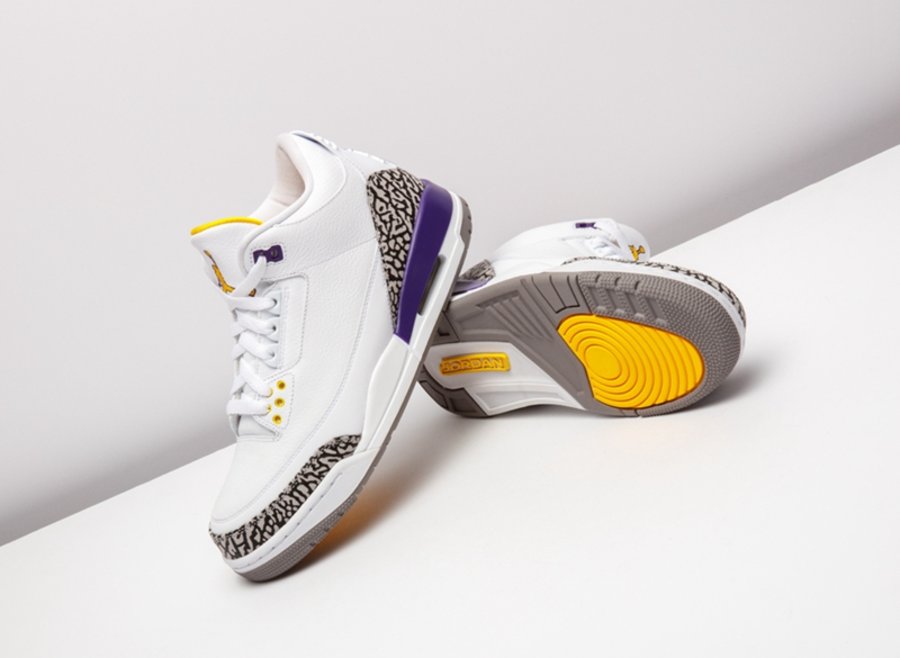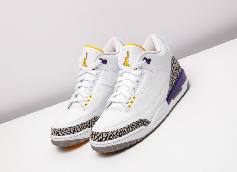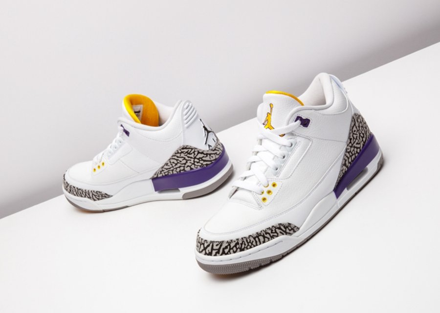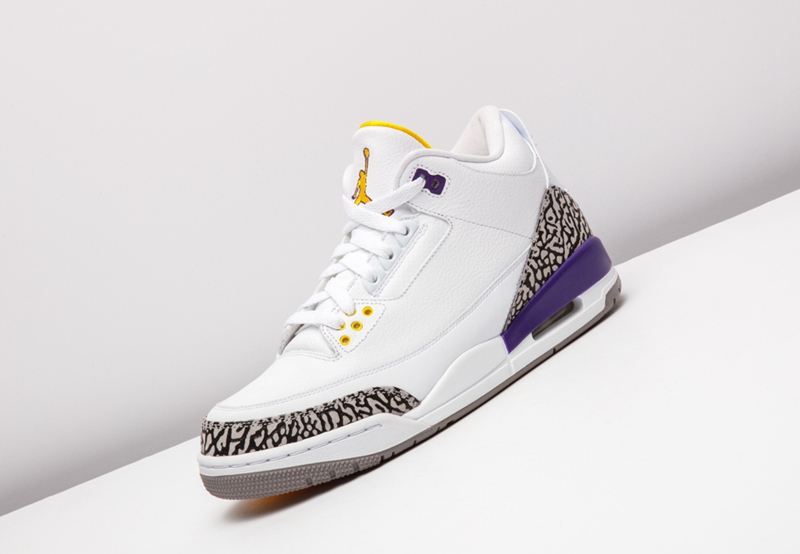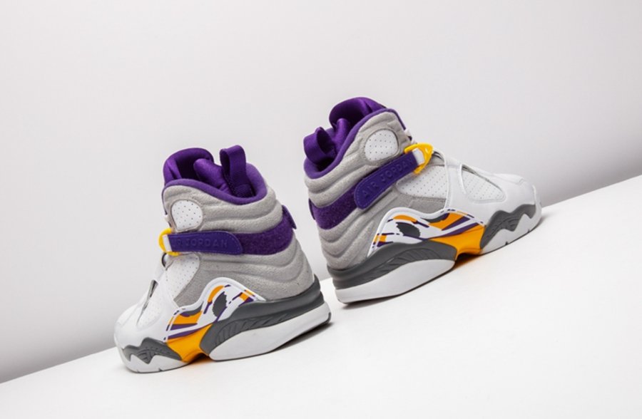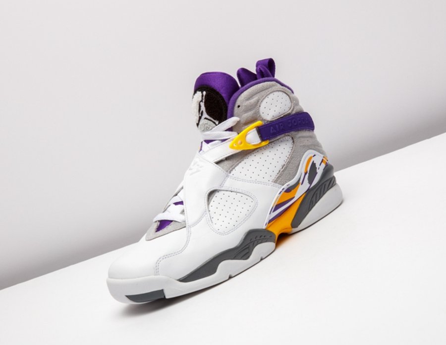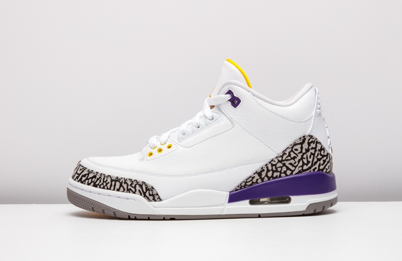 这套湖人配色 Air Jordan 3/8 曾被科比本人在离开 adidas 后的乱穿鞋时期上脚,随后 Nike 将其制成套装赠予飞侠,从未市售。