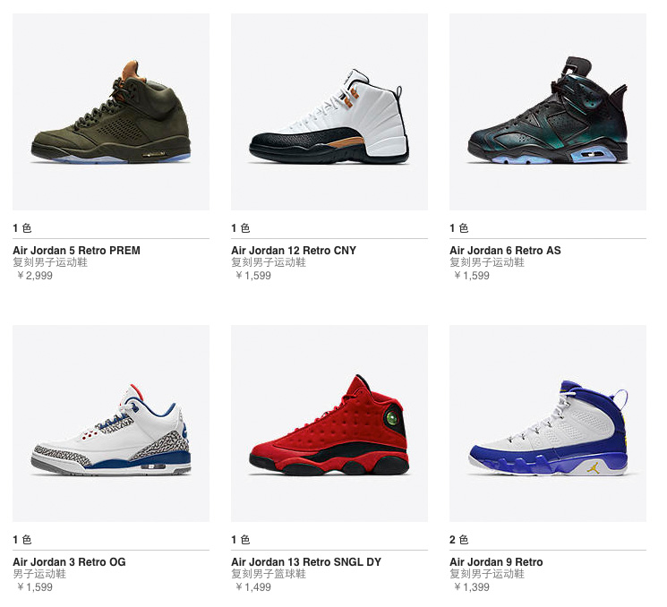 定价 ¥1499 的 Air Jordan 13 “What Is Love”,定价 ¥1599 的 Air Jordan 12 CNY,定价 ¥1599 的全明星 Air Jordan 6,现在在 Nike 官网都还可以下单,相比于前几年的 ¥1249,涨幅是十分明显的。
