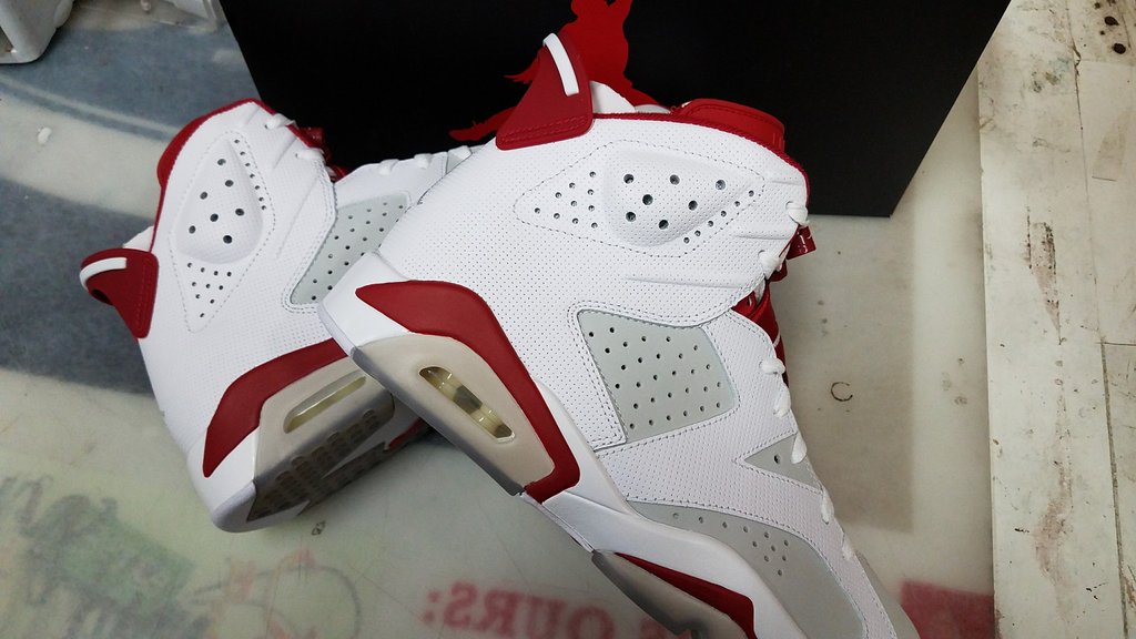 这双 Air Jordan Retro 6 “Alternate” 采用全新皮革纹理及鞋舌细节,在面具鞋舌的内侧,可以看到有 1991 的字样。而清爽的浅色鞋面则呈现了精细的冲孔纹理,健身红的细节托衬,熟悉的白红装扮带来十足的运动活力感受!前段时间 Marcus Jordan 在自己的 Instagram 上晒出跟老爸的合影,照片中的 Michael Jordan 上脚了这双 Air Jordan 6 “Alternate”。