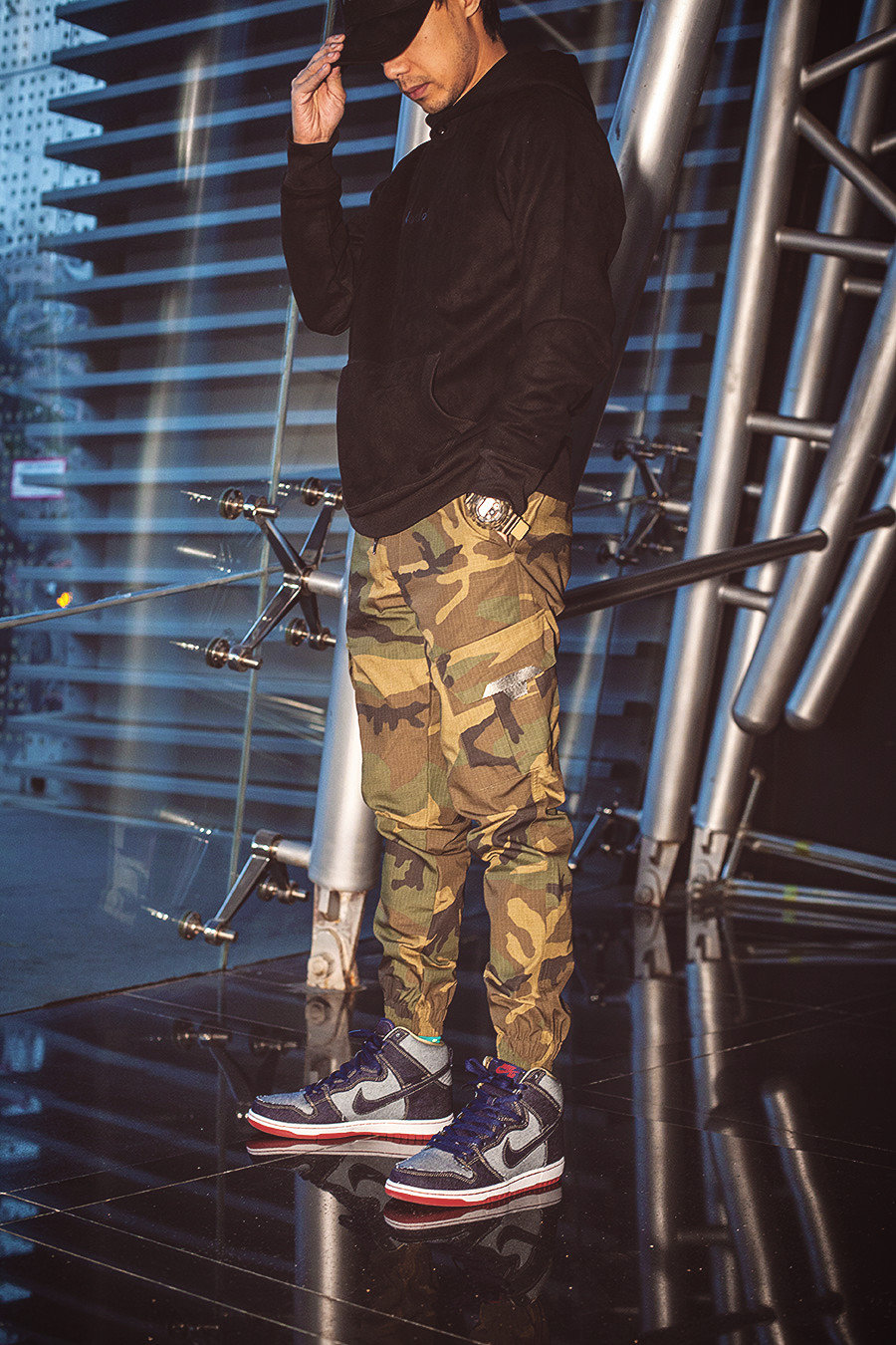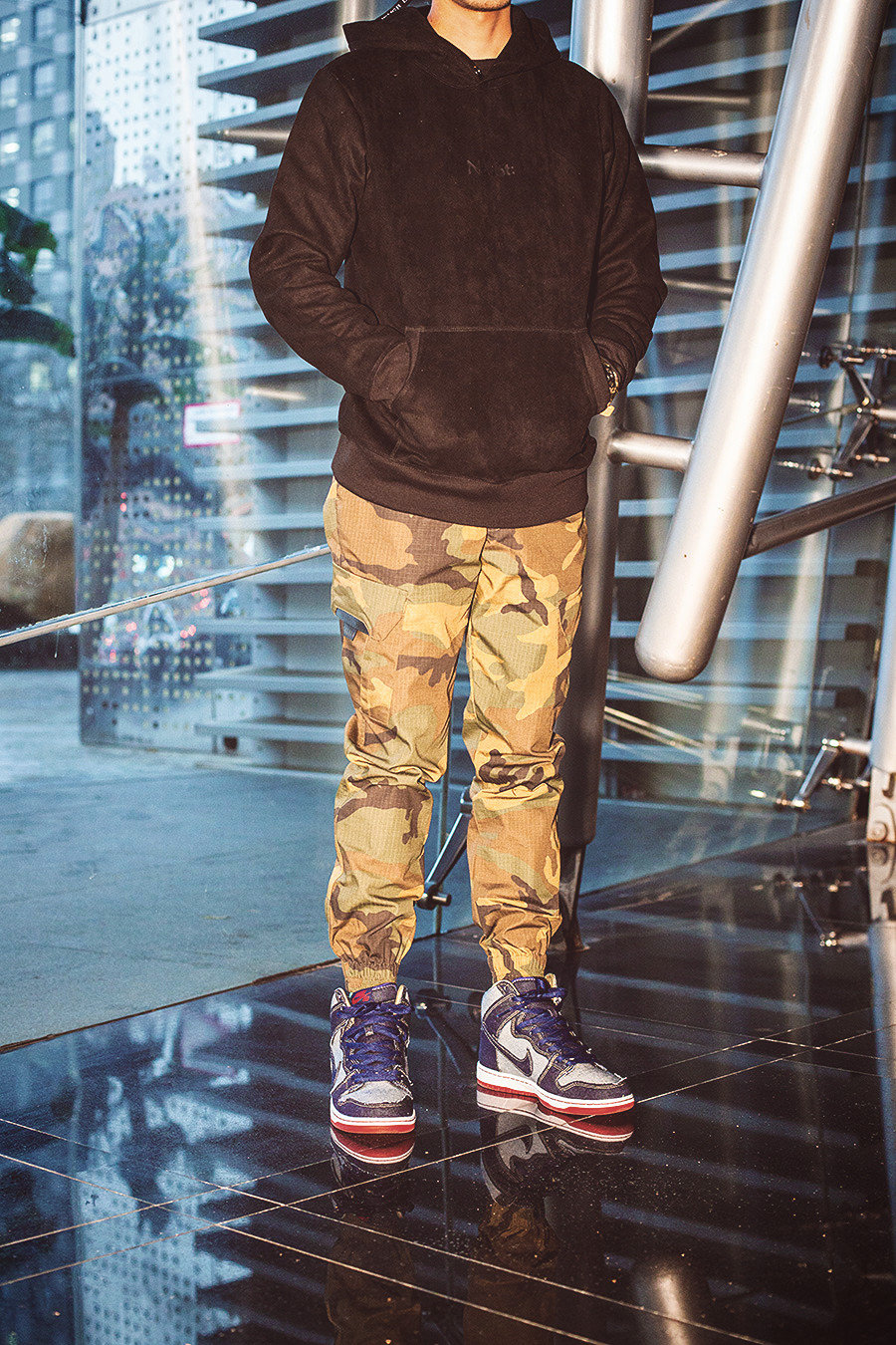 带来 FC 编辑部小编的上脚实拍,选用了黑色麂皮卫衣搭配迷彩工装束腿裤,提前感受这一份 “把牛仔穿在脚上” 的形象!