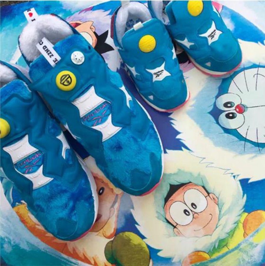 近日美国球鞋名所 Packer Shoes 携手日本老牌运动店铺 atoms,以及日本国民卡通形象 Doraemon,共同打造出一款多方联名的 Reebok Instapump Fury。