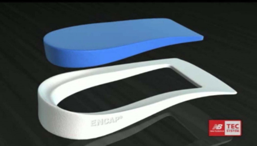 Encapsulated(ENCAP) - New Balance 研发的一种中底缓震结构。将支撑性能更好的 PU 材料包裹住柔软的 EVA 缓震胶,打造出组合避震的效果。
