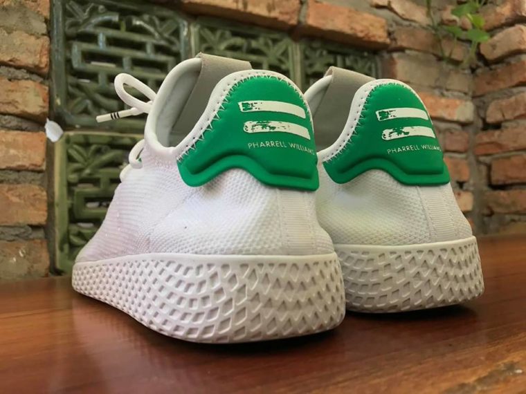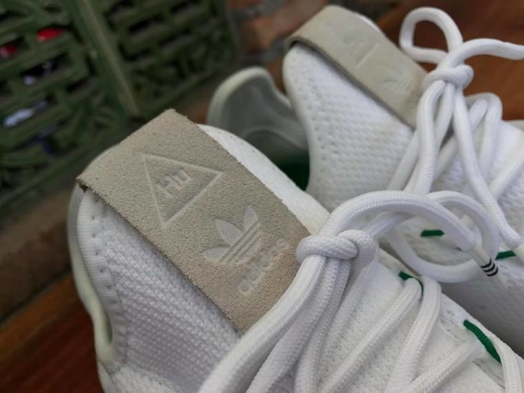 眼前这双 Pharrell Human Race 鞋款格外的特别,鞋舌的 Hu 字样和后跟的菲董名字,都表明了它的合作身份。