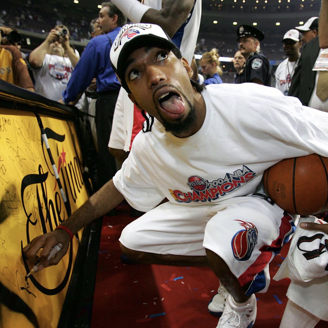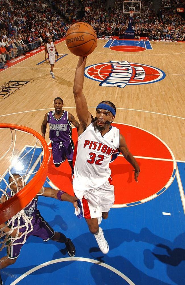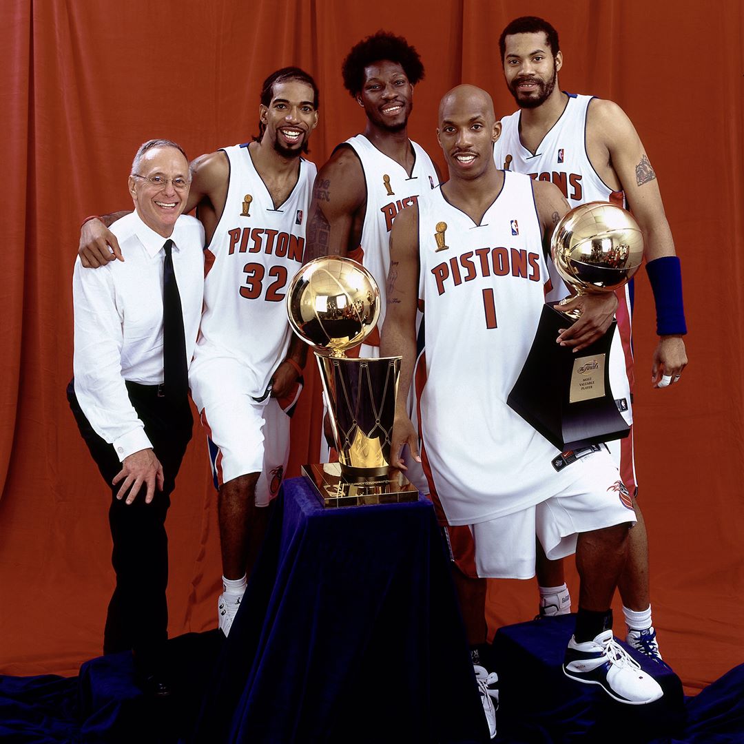 底特律活塞五虎昌西-比卢普斯、泰肖恩-普林斯、拉希德-华莱士、本-华莱士等在内的 2004 总冠军成员纷纷到场,活塞五虎得以再聚首,冠军主帅拉里-布朗也一同现身于底特律活塞奥本山宫殿球场主场。