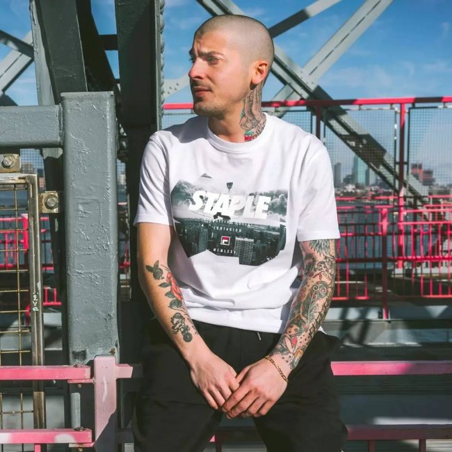 STAPE 的主理人 Jeff Ng 作为全球知名的街头服装设计师,早在 1997 年就在纽约创建了自己的潮流品牌,开始了他的潮流道路。毕业于 Parsons 艺术学校的他,最喜欢手工制作限量的 Tee。Jeff 还将自己对于设计的执着融入了 STAPLE,当然还有坚忍不拔的纽约精神。他将 “鸽子” Logo 发扬光大,传遍世界每一个角落,并获得无数街头人士追捧,这里面不乏众多大牌 NBA 明星和知名艺人。其后 “鸽子” Logo 在街头领域产生的巨大效应一发不可收拾,它不仅成为纽约街头的标志,甚至对世界潮流圈产生着深远影响。凭借着极具纽约特色的鸽子元素和偶尔俏皮的鸽子屎俘获了大量热爱街头文化和街头运动的年轻人的心之后,STAPLE 的鸽子元素出现在数量众多的跨界设计和联名产品之中。今次与 FILA 的联乘鞋款,就在鞋舌、鞋垫等多处细节加入鸽子元素,让人过目不忘。