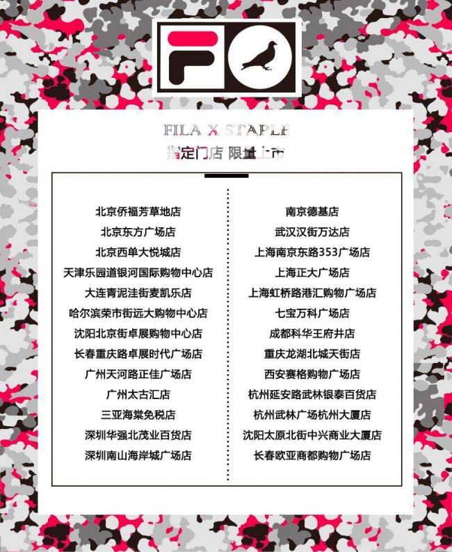 如果你渴望拥有超级限量的 FILA x STAPLE 服饰系列,敬请点击这里进入 #STAPLExFILA# 专属页面,或通过下面大图查看 26 家指定门店,和千万潮人一起剁手!!!