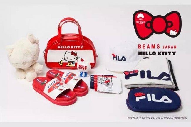 在迎合女性消费者方面,FILA 也做得十分到位,在日本潮流通路 BEAMS 的牵头下,FILA x BEAMS x Hello Kitty 三方联乘问世,其中包括 T 恤、袜子、背包,甚至网球服! 所有单品的设计灵感都是来自 Hello Kitty,不少单品甚至有立体的丝带,吸睛度极高,令你少女心大爆发。