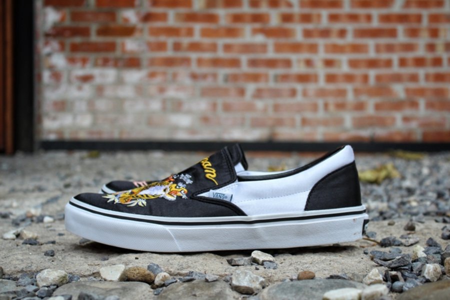 Vans 与多次合作的 ROLLICKING 即将发售全新联名鞋款。Vans x ROLLICKING 采用经典 Slip-On 鞋型呈现,并配以近年流行的横须贺风格作为整体格调,在绸缎的鞋身上刺以猛虎蛟龙的图案,搭配 Play Set Products 的卡通角色,十分具有日式风情。 据悉这款鞋将于 3 月 10 日发售,喜欢的朋友可以持续关注我们的后续报道。