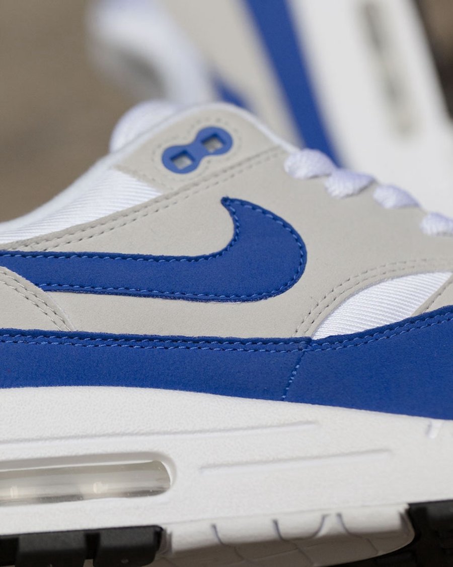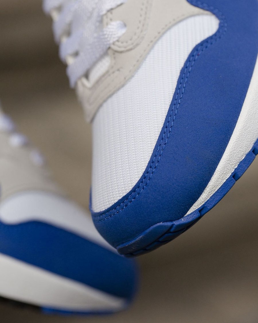 今年是自 1987 年来,Air Max 1 的三十周年纪念。作为经典的元年配色,这次复刻的蓝色 Air Max 1 细节部分几乎同当年原版相似,白蓝相间于鞋面之上,并搭配以中性灰色麂皮覆盖,底部由黑白蓝三色呈现。原汁原味的材质质感,经典熟悉的运动活力装扮和开窗气垫,喜欢的朋友一定不会错过。