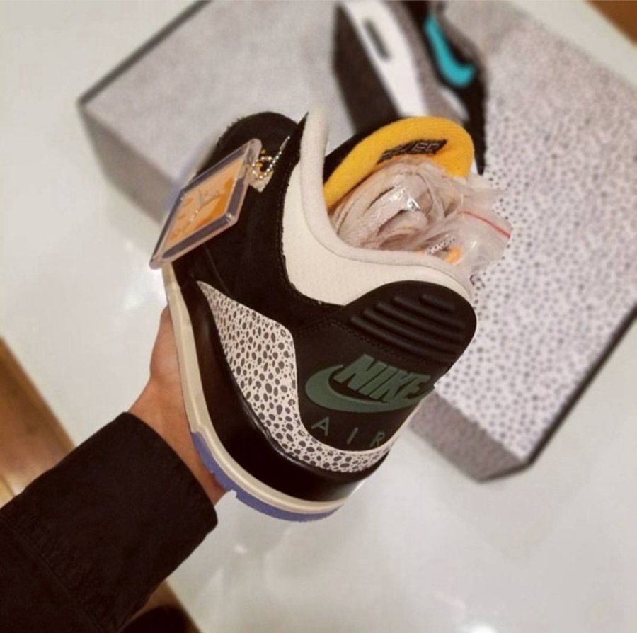 此番 Air Jordan 3 以黑色磨砂皮革搭配 Safari 石斑纹理点缀,冰蓝水晶大底与橘黄色内衬均流露出当年 Air Max 1 “Safari” 熟悉的身影。