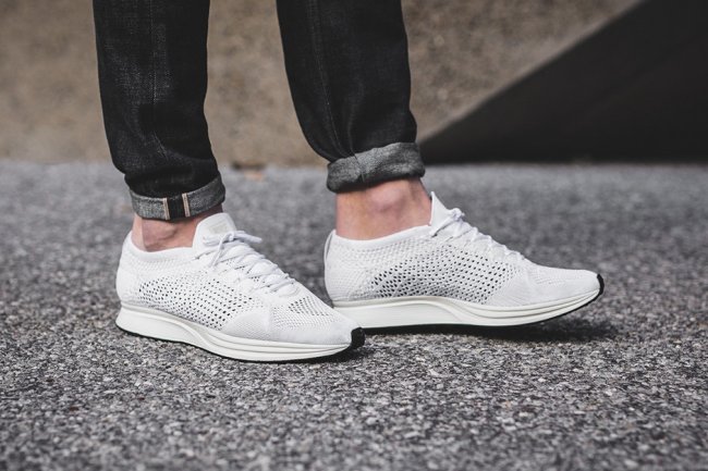 这双名为 Nike Flyknit Racer “Goddess” 从鞋身到鞋底到各项细节都采用了纯白色打造,但通过 Flyknit 的精细编织,鞋身侧边的 Swoosh 依然若隐若现,保留了品牌的经典元素。