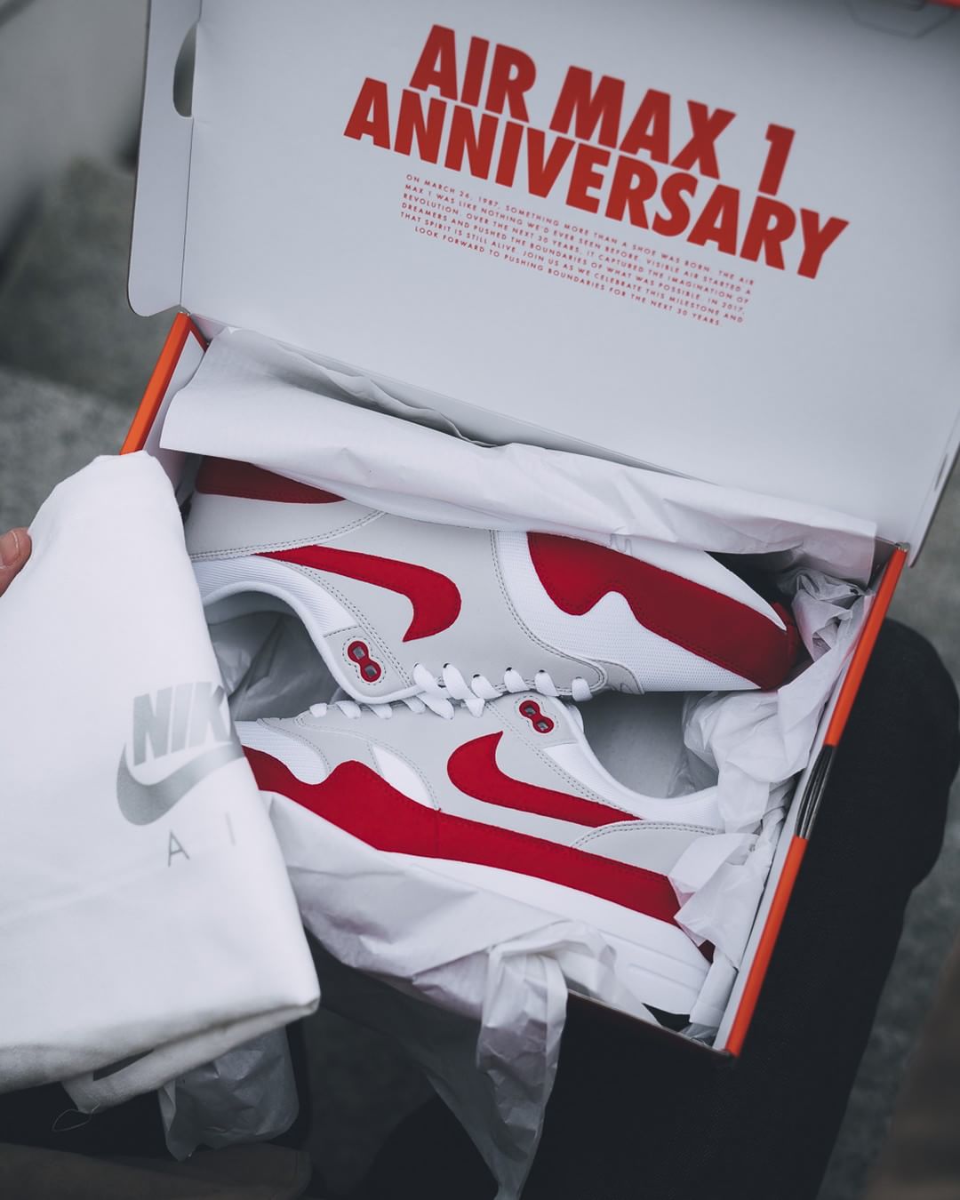今年 Air Max Day 的重头戏之一,自然是已经 30 岁的 Air Max 1 迎来白红和白蓝 OG 原色的完美复刻! 同时还带回了元年模样的鞋盒,附带了一个精美的防尘袋。本次的配色名称为 Air Max 1 “Anniversary”,体现了周年庆祝的意味。 中国区已经有少量店铺发售,Nike 中国官网还没有公布发售的信息,官方发售价可能为 ¥999 RMB,对于各位 Air Max 1 的粉丝而言,多少钱入手算是好价呢? 货号:908375-100/908375-101