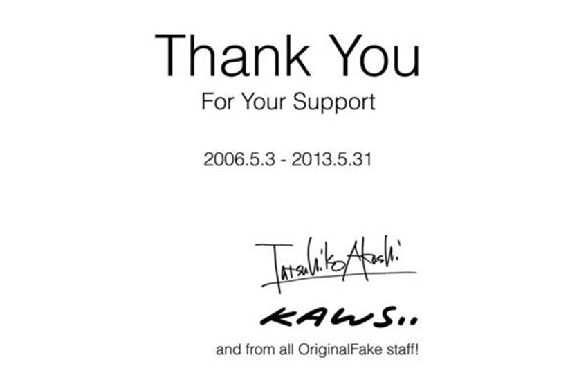 虽然 Original Fake 在 2013 正式结业关闭,网站最后留下的墓碑图片,在留有一丝伤感的同时,更包含了对一众好友及粉丝的感谢。