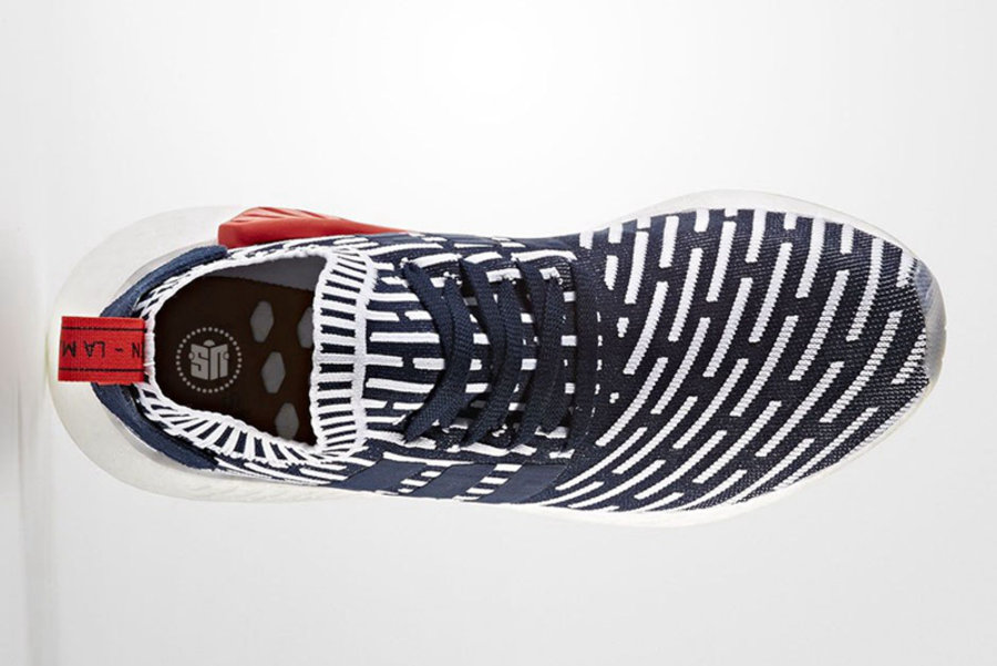 此番,这双值得关注的 NMD R2 官方图已经释出,NMD R2 依旧采用了 Primeknit 袜式鞋身呈现,鞋面整体的色调为深蓝色,白色条纹附于鞋面上予以点缀,而后跟的拉环设计和鞋底的稳定块部分则选择了对比反差比较大的红色做为搭配,最后以纯白色 Boost 中底配以半透明外底作为收尾。