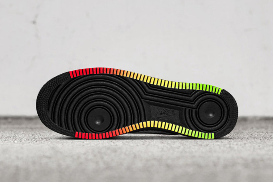 这款鞋仅限量一双的鞋自然有它的特别之处,它的灵感来自于 Disco 和英国的骑士盔甲,整个鞋面由漆皮材质的银色纹理呈现,鞋舌处更加别出心裁,刺以 “Be True” 的字样这与六色彩虹的鞋底相呼应,鞋舌处还细心地加上了这款 PE 配色的名称 “AF1 JET”,最后以鞋尾处刺绣上了 Elton John 的爵士封号 “Sir” 的字样收尾。(由于Elton John本人为双性恋者,并同他的男性伴侣结婚至今,所以为之特此设计)