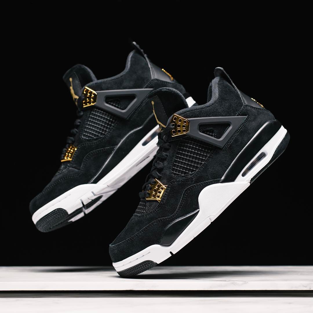 采用黑色翻毛皮革打造的鞋身,将四代特有的篮网状鞋带扣以电镀金色点缀,营造出难以抗拒的高贵质感。一席白色外底收尾,在丰富整体层次的同时又带来经典的撞色反差,着实让人心动。