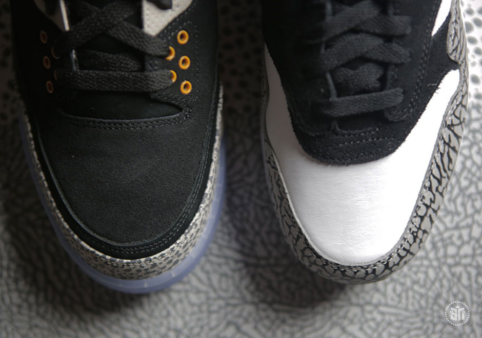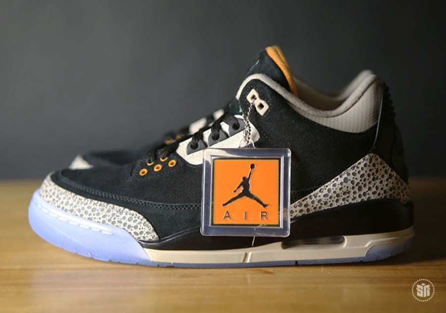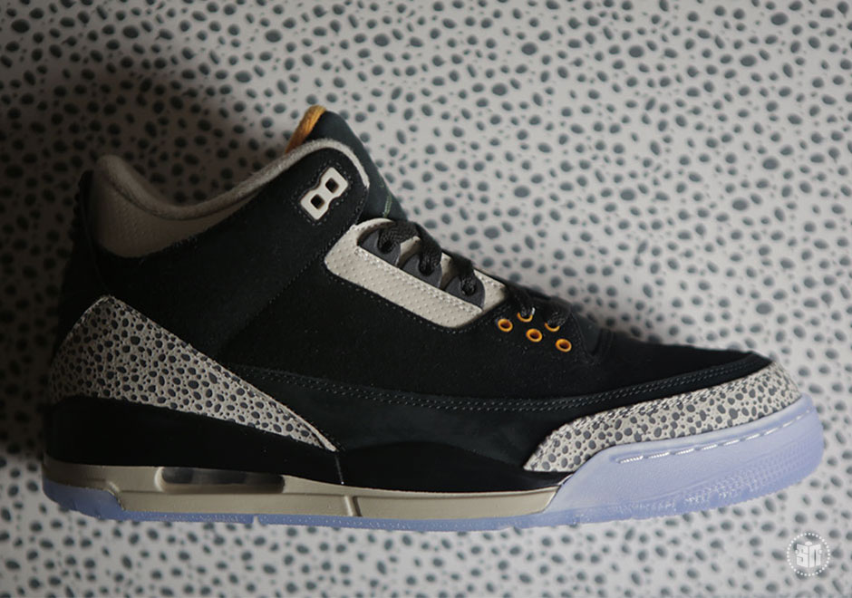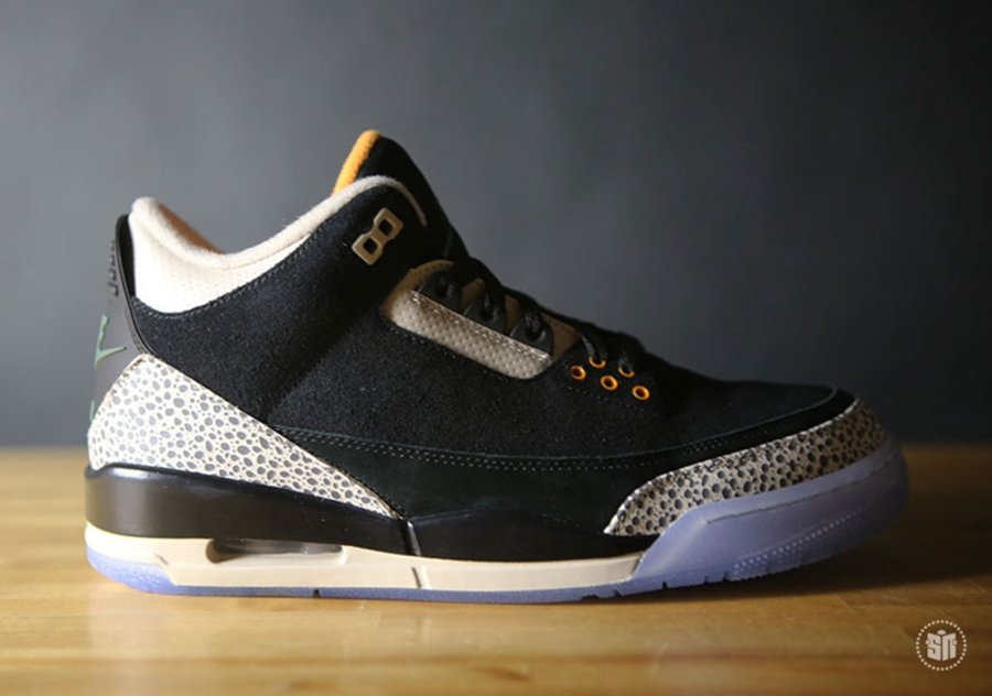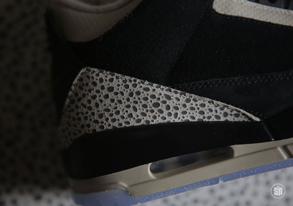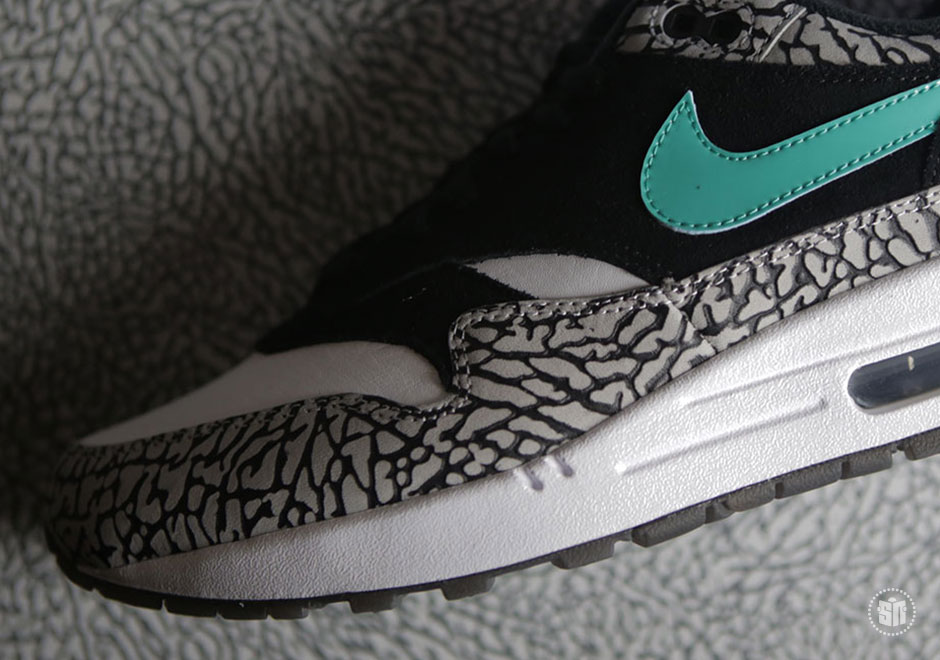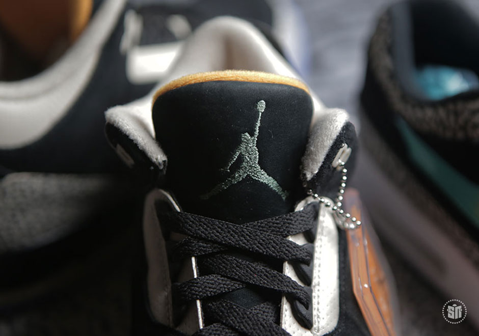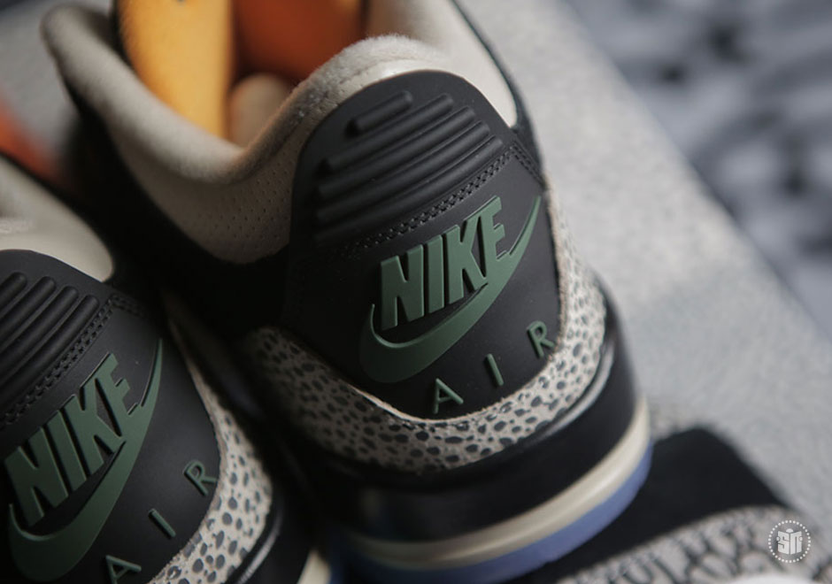 其中 Air Jordan 3 采用 Safari 纹理替换固有的爆裂纹细节,黑色麂皮鞋面辅以橘色细节点缀搭配淡蓝色水晶外底,褪去古朴篮球鞋的固有风范,展现出别具一格的时尚魅力。另一双 Air Max 1 将去年票选复刻呼声最高的 Atmos “Elephant Print” 带回,熟悉的翡翠绿搭配爆裂纹,精妙风采依然让人心动。而外底更采用烟熏色半透材质,映衬出金色 Jumpman Logo,以彰显联名套装的专属身份。