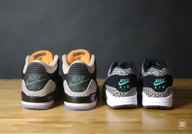 Air Max 1 诞生 30 周年,Jordan Brand 也来跨界庆贺!将首现于 Air Jordan 3 上的爆裂纹与 atoms x Air Max 1 “Safari” 的石斑纹进行元素互换,即将奉上诚意十足的 Air Jordan x Max “Atmos” Pack。