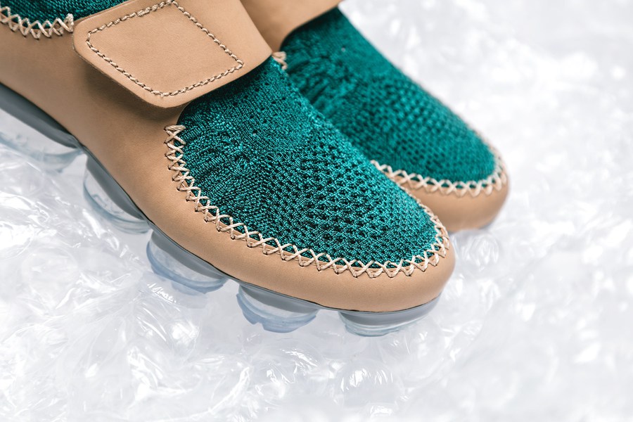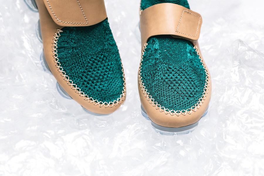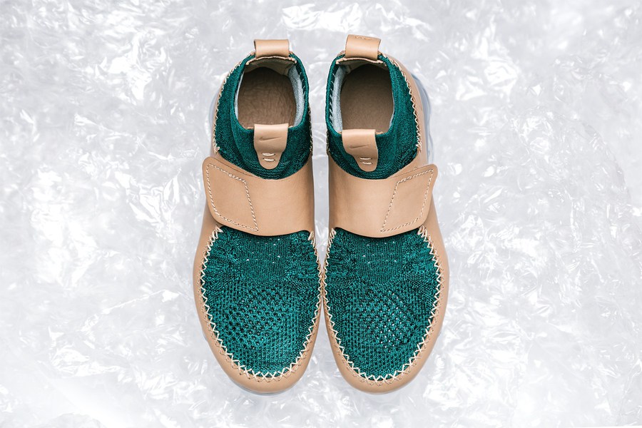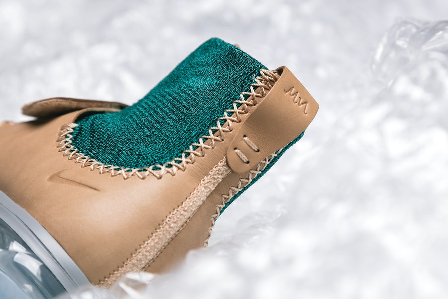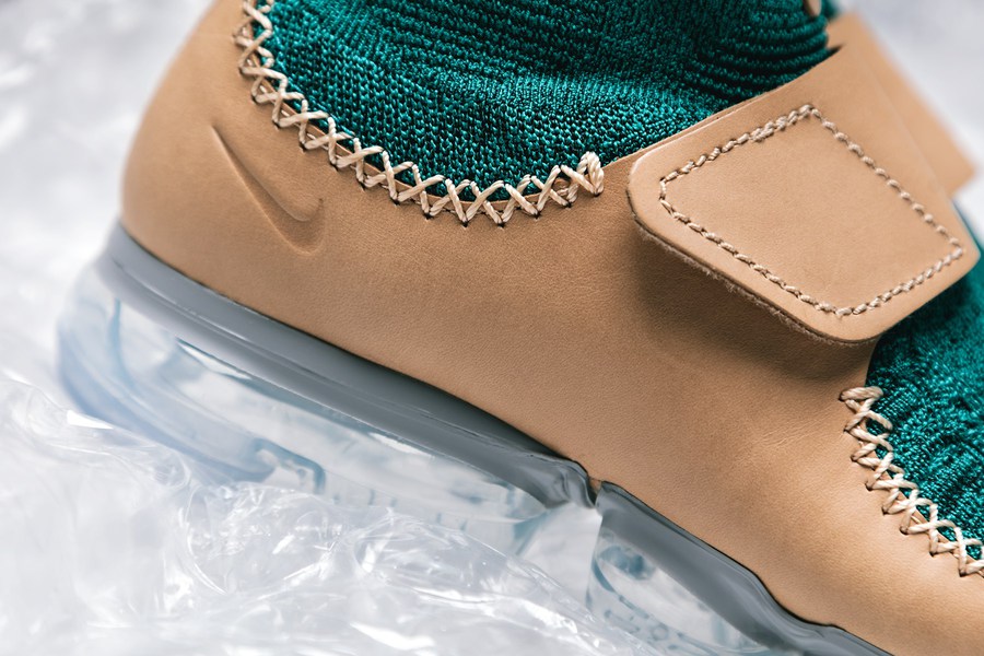 采用原色皮革搭配 Flyknit 编织材质,呈现高帮袜套鞋身,晶莹剔透的 VaporMax 外底则是科技感受的完美体现,同时尚的鞋身风格结合,这一反差又相互依托的视觉感受,着实让人难忘!