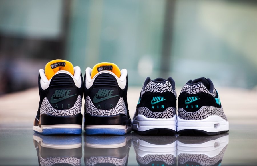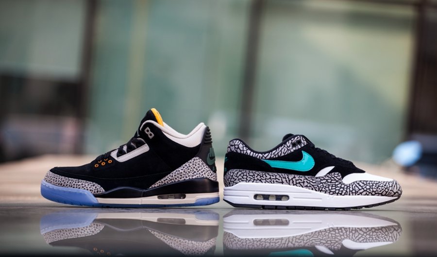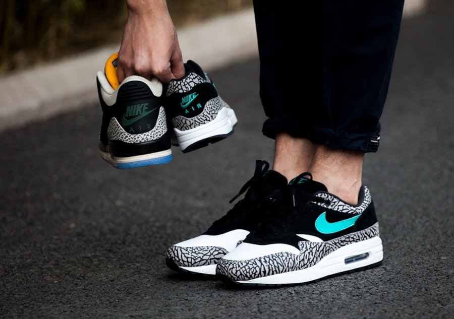 时任 atmos 创意总监的 Hirofumi Kojima 同样是个不折不扣的 AJ 迷,他第一双 Jordan 球鞋就是 1994 复刻的 Air Jordan 1 “Chicago”,而对另一双 AJ3 爆裂纹的喜爱,则成为 Air Max 1 “Elephant” 最大的创作灵感!