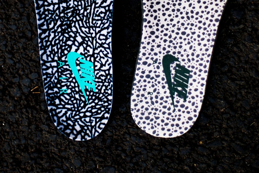 本次将 AJ3 纳入套装之中,辅以另一双 Air Max 1 “Safari” 石斑纹的注入,再次带来颠覆性的基因互换,延续脑洞大开的创意思路!麂皮、石斑纹、打孔皮革三者之间的合力打造,不仅呈现出丰富的鞋身质感,后跟 Nike Air 标志更营造出浓浓的复古气氛。