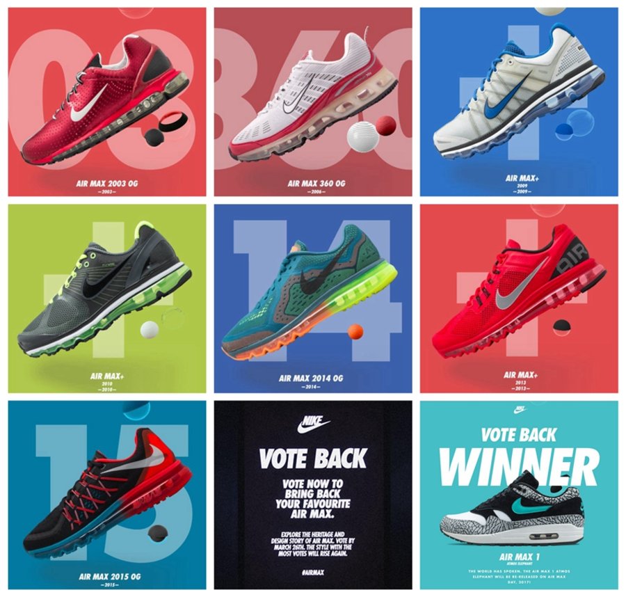 为什么说百里挑一?就不得不提到去年 Air Max Day 期间,Nike 在全球举办的 “Vote Back” 复刻票选活动!从 1987 年 Air Max 系列诞生之日起,直到 2016 年,在这过往的 29 年间,一共有 9728 款 Air Max 球鞋面世。Nike Sportwear 从这 9728 份海量档案中,选出 100 双最具影响力的球鞋,由广大 Sneakerhead 通过线上及线下方式投票,得票最高的那双,将会在今年 Air Max Day 期间再次发售!