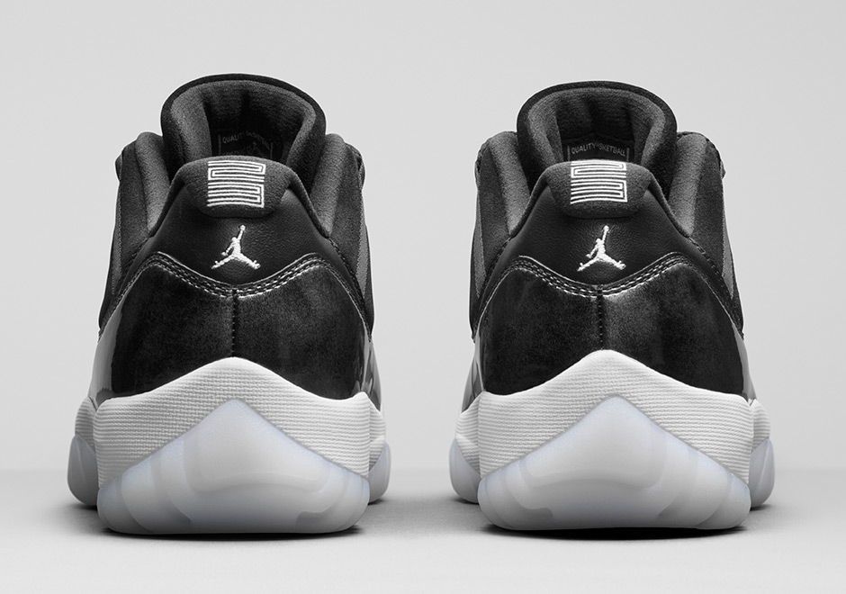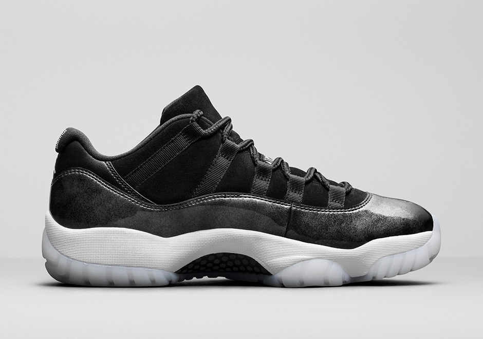 Air Jordan 11 Low “Barons” 除了大理石纹理的漆皮之外,鞋面还加入了麂皮材质。无论是黑白银的简约呈现,还是外底的乳白质感,都让人着迷!