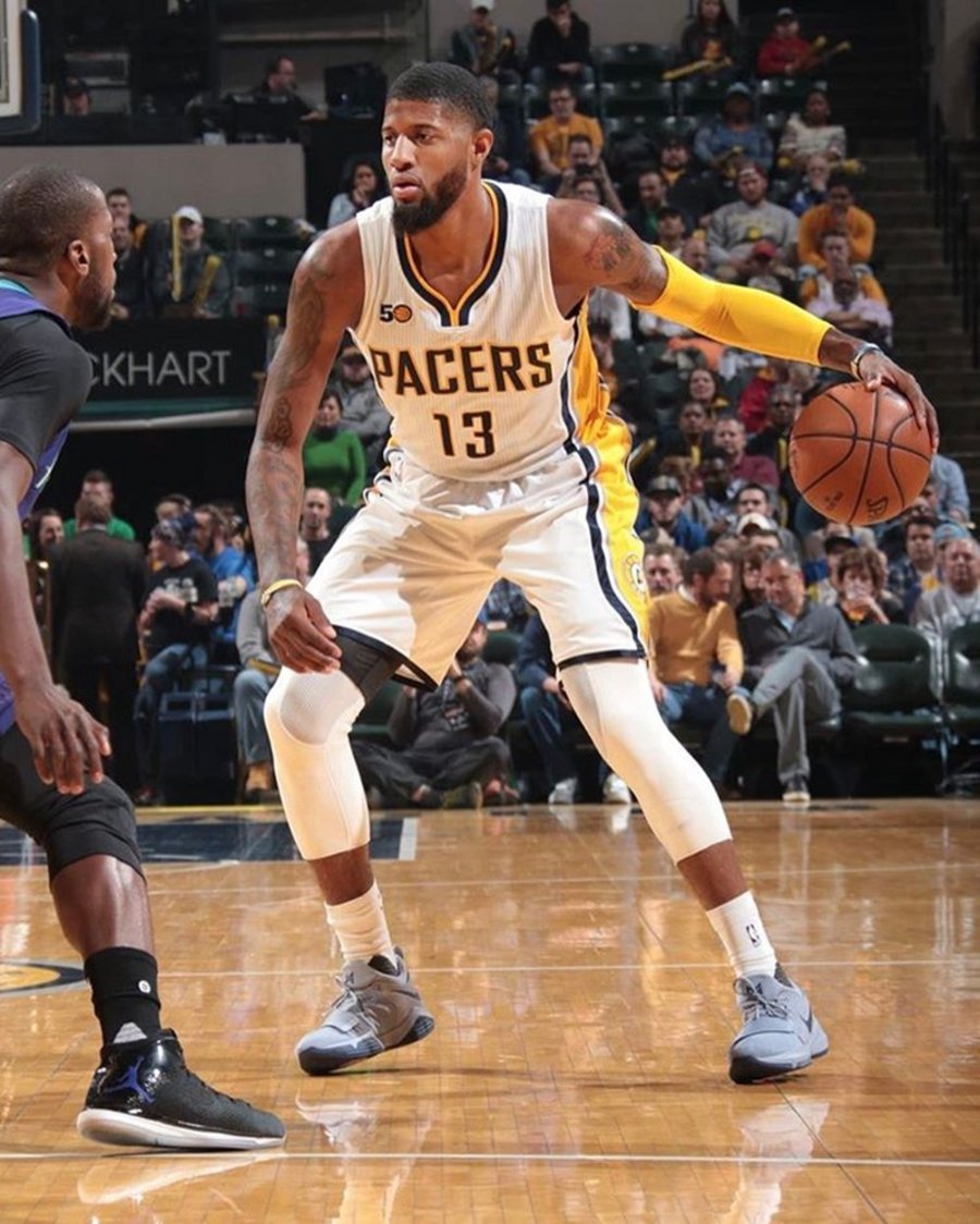 在今日同猛龙的比赛中,步行者队的保罗·乔治上脚了一款全新配色的 PG 1。