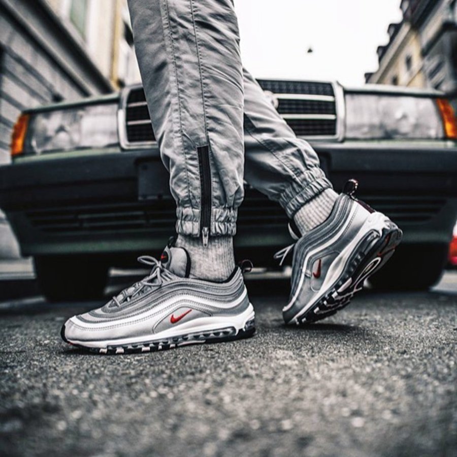 Air Max 97 灵感来源日本新干线高速列车,搭载霸气的全掌 Air Max 大气垫,将金属银与流畅的鞋身线条完美的结合,视觉杀伤力十足,绝对是街头吸睛的绝佳之选!
