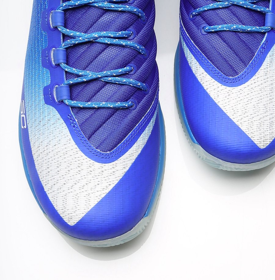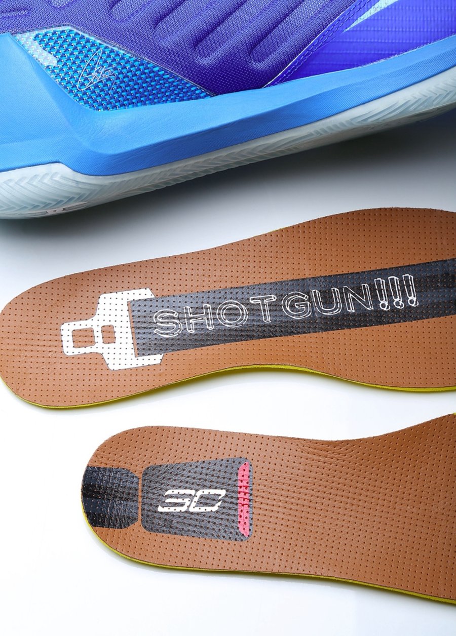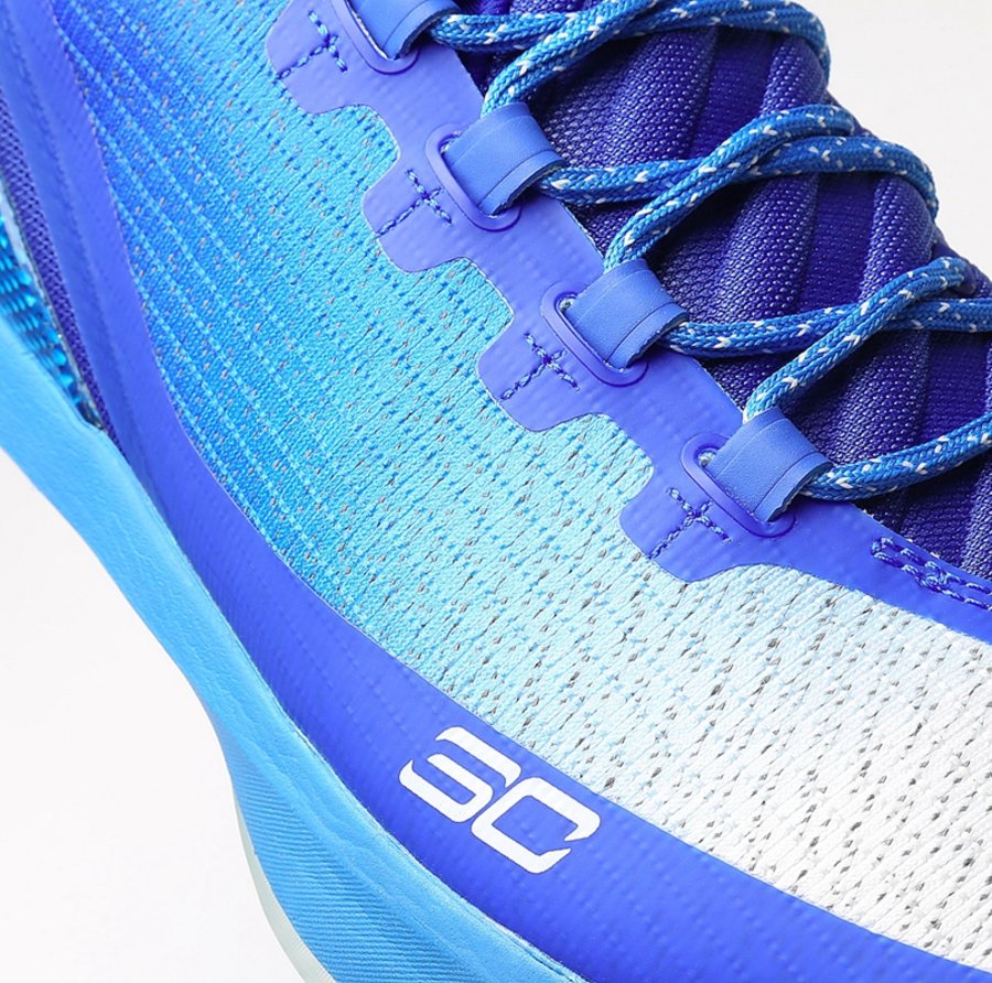 鞋身均采用蓝色为主基调,并在鞋面加入了渐变色效果。值得一提的是,在这款鞋的鞋垫上印有安全带图案,象征着库里兄弟期间的深厚情谊。这款寓意着库里兄弟情深的鞋款目前暂无市售信息,下面一同欣赏这组细节美图。