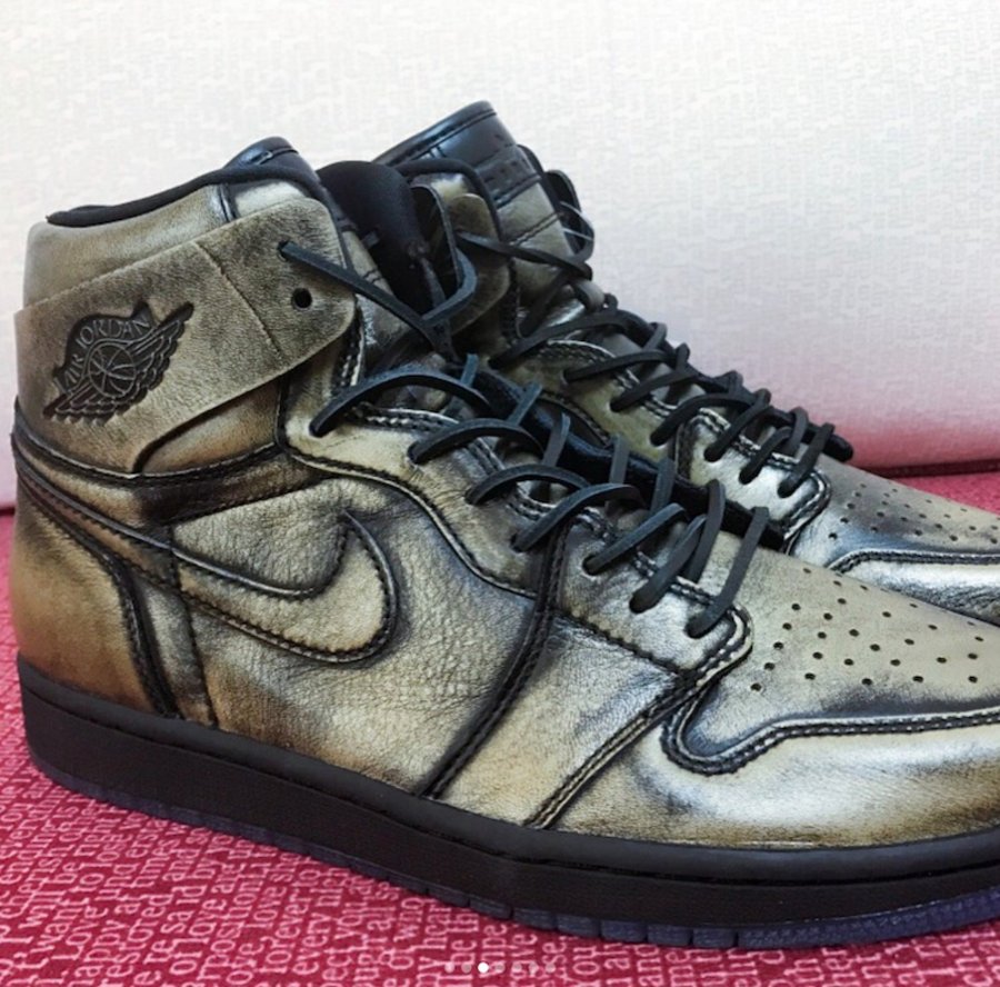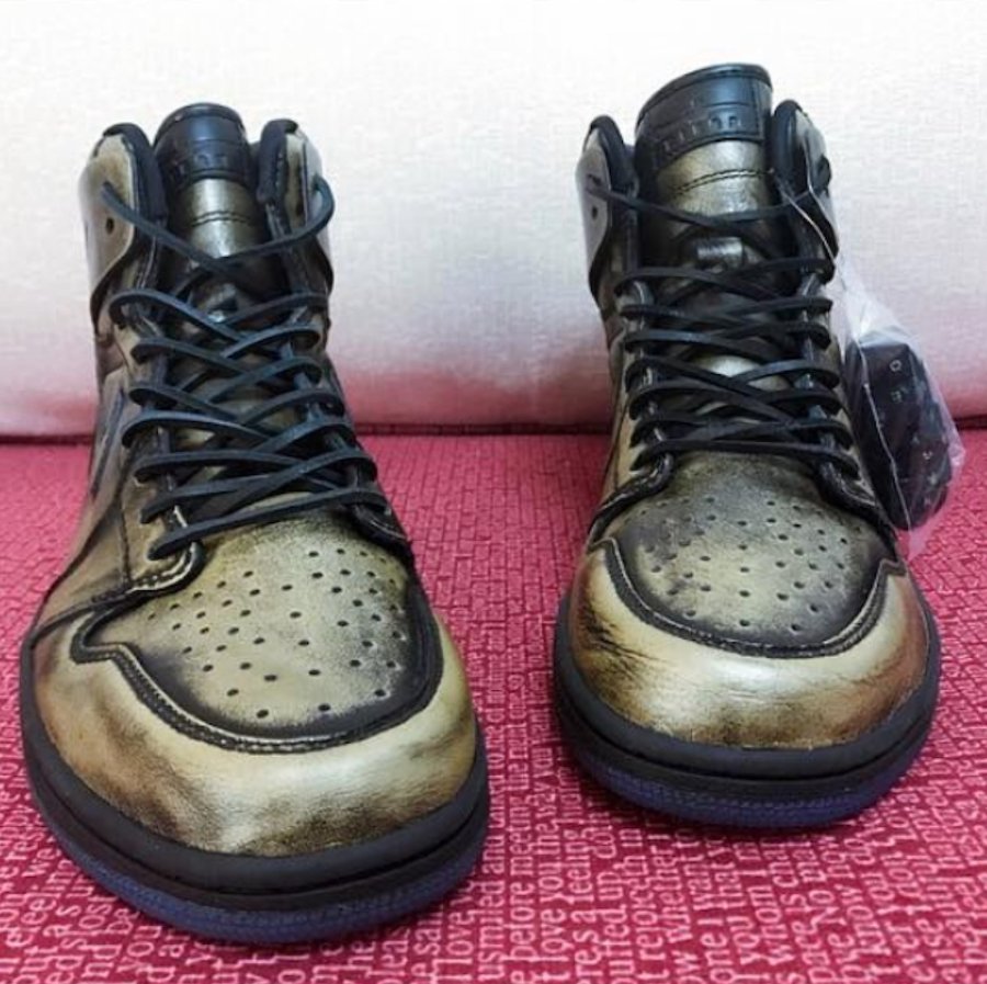 这双鞋的外观就十分惊艳,鞋身整体由古铜色呈现,金属感十足,再配以极具质感的鞋带点缀,鞋舌与鞋后跟的金色标牌呼应主题,其经典的金翅膀图案则置于鞋垫之上,最后搭配印有 “Wings” 的透明底收尾。