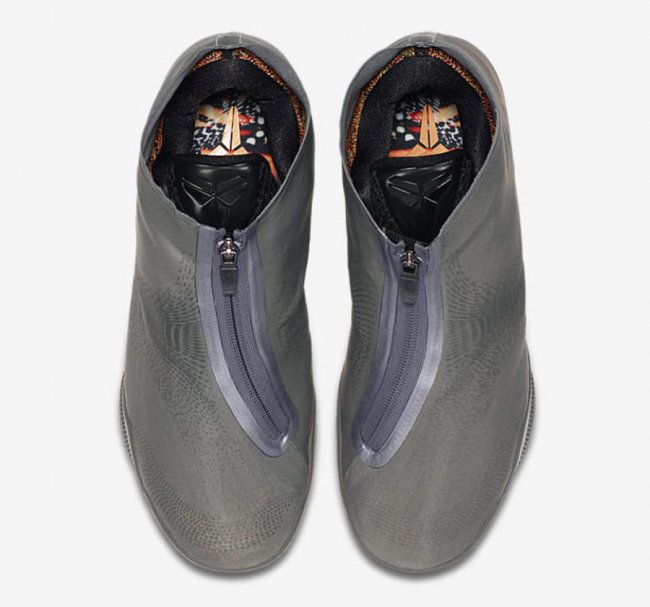 鞋身采用暗纹中帮鞋套包裹,辅以压胶侧方拉链加持,颇有佩顿手套的影子。拉开面罩拉链,内藏一双编织版本 Kobe 11,更加前卫的机能表现让人过目难忘!